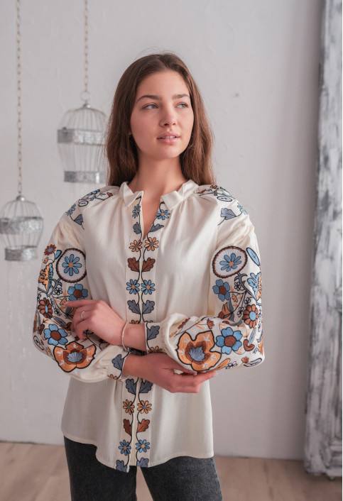 Жіноча вишиванка “Веснянка” виконана на льоні, тип вишивки гладдю