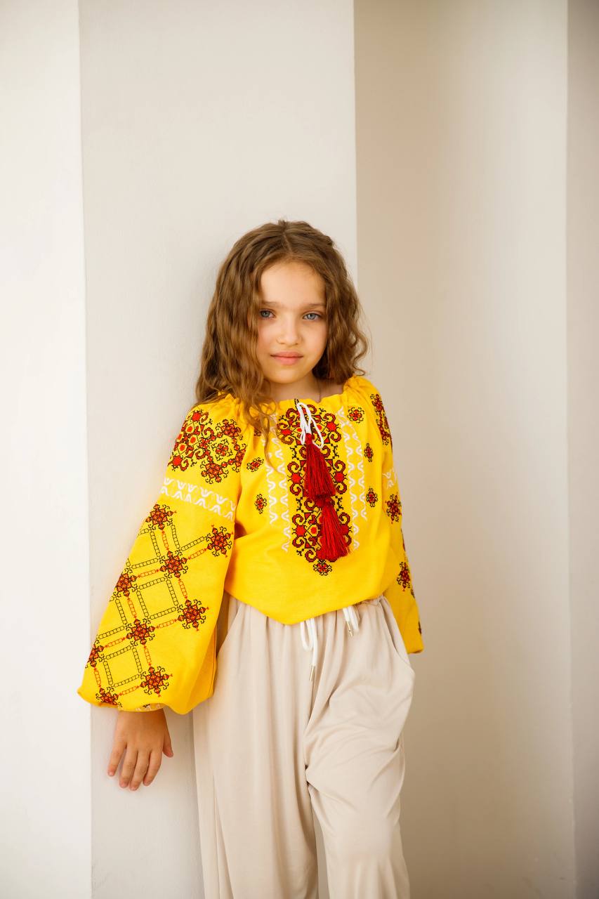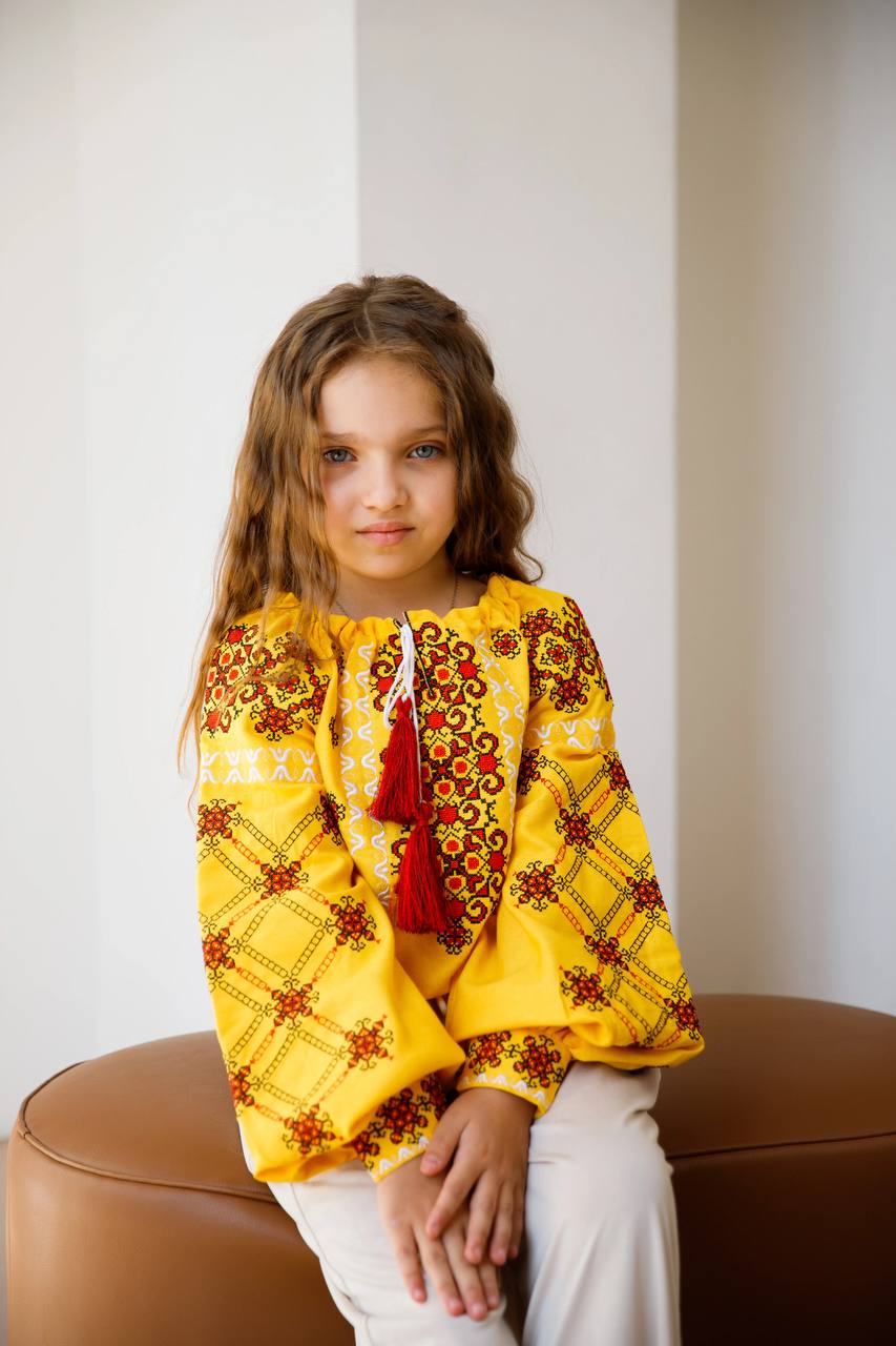 Вишиванка для дівчинки Ангеліна (жовта з червоним)