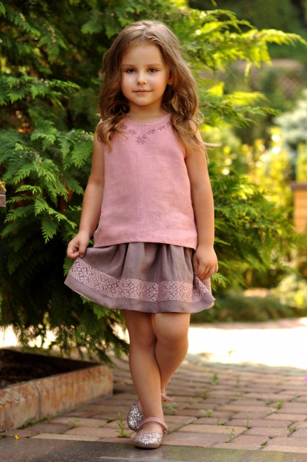 Вишиванка і спідничка для дівчинки Віолетта (рожева)