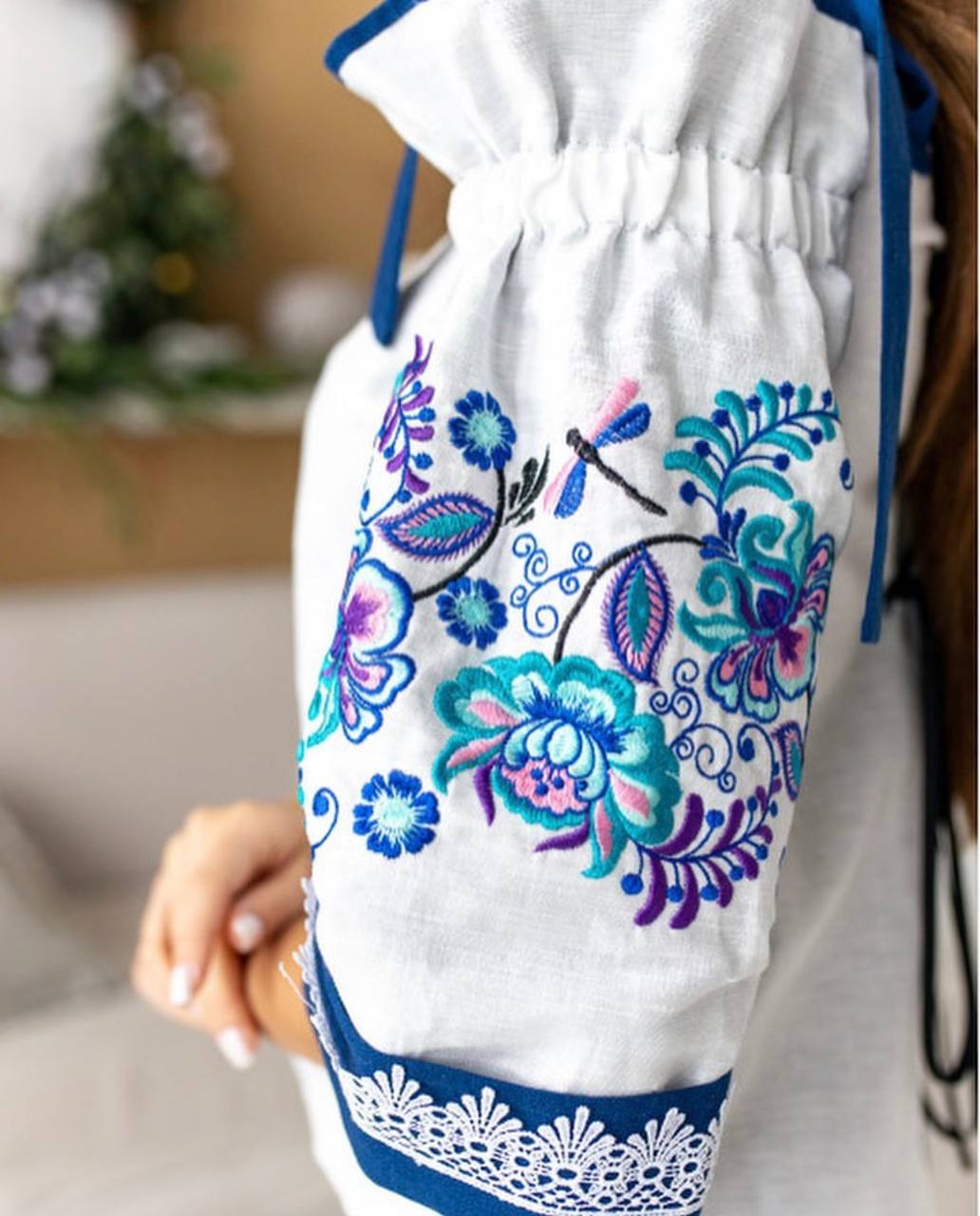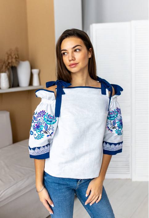 Жіноча вишиванка “Квіткова розкіш” виконана на льоні, тип вишивки гладь.