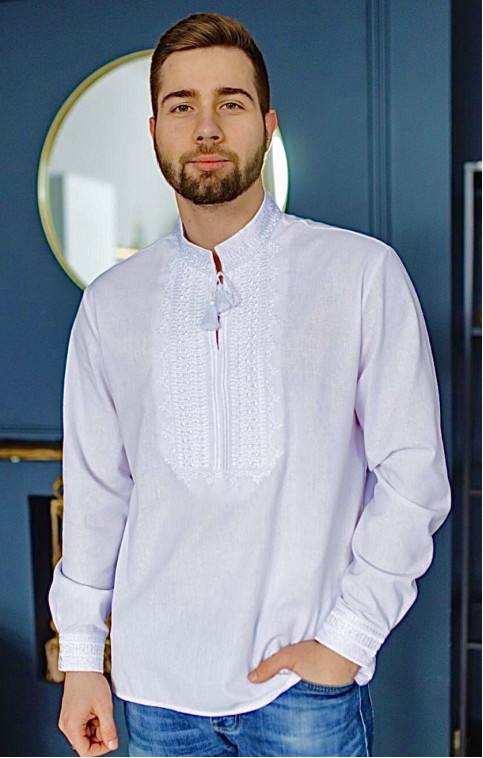 Чоловіча вишиванка Традиція ( біла) виконана на льоні, тип вишивки гладдю