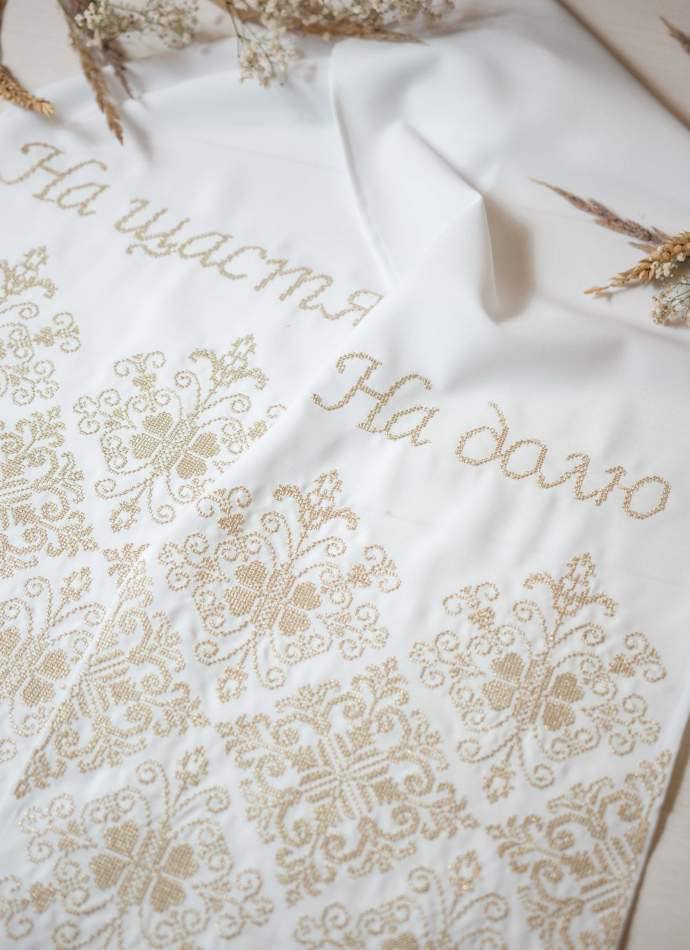 / Вишитий рушник “На щастя на долю” (золотий)