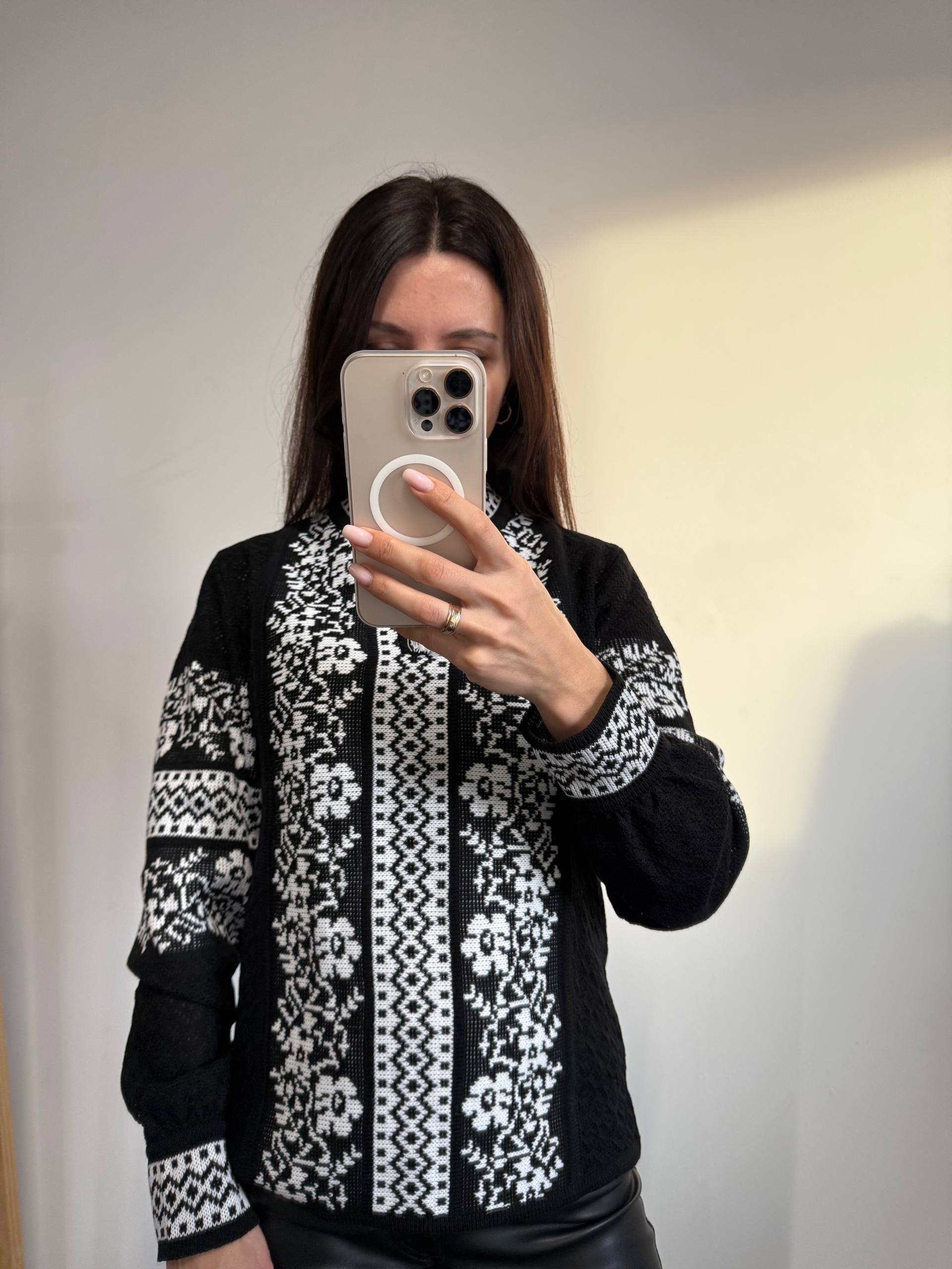 В’язана жіноча вишиванка Газдиня (чорна з білим)