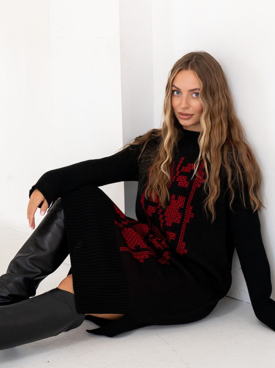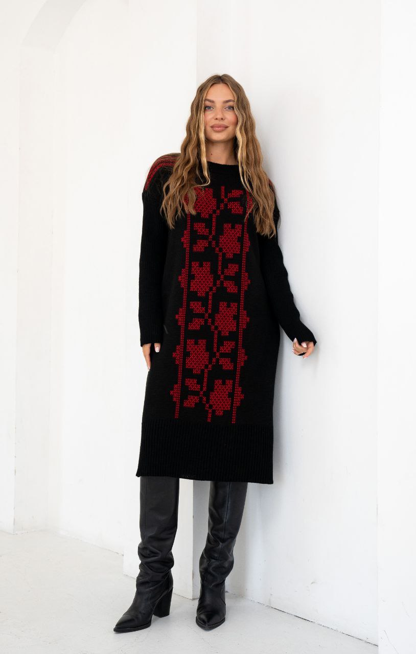 В’язана сукня Гармонія (чорна) є універсального розміру 44/50.