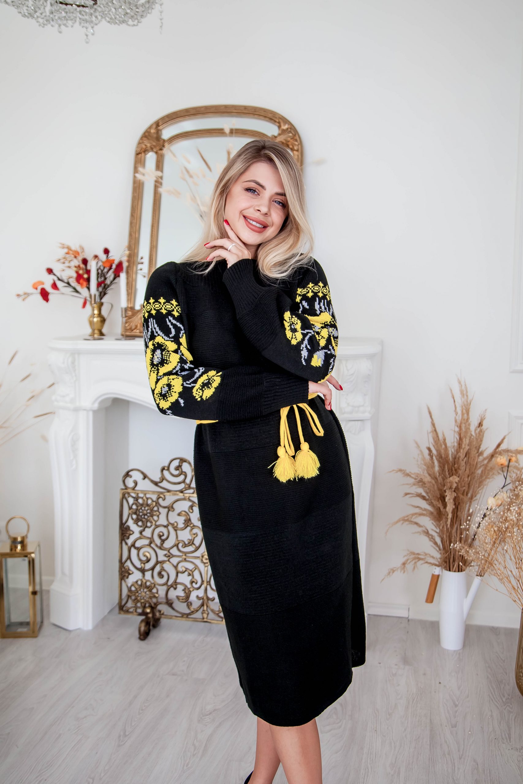 В’язана сукня Маки (чорно-жовта) є універсального розміру 44/50.