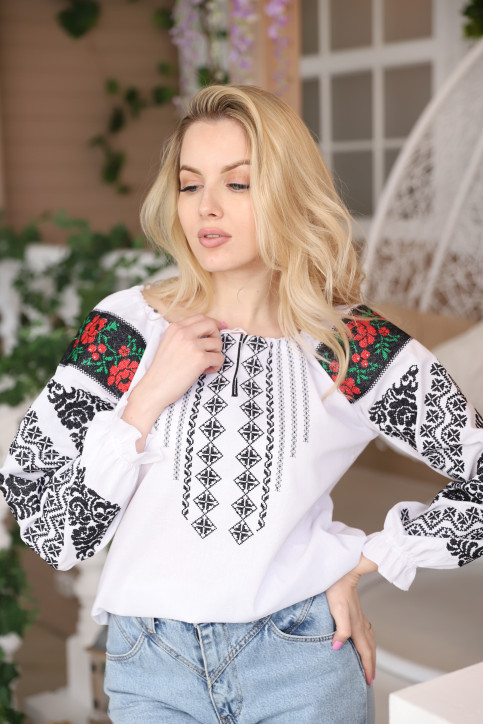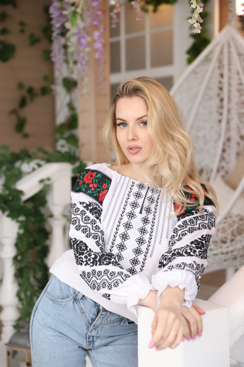 Жіноча вишиванка Аничка (біло-чорна)