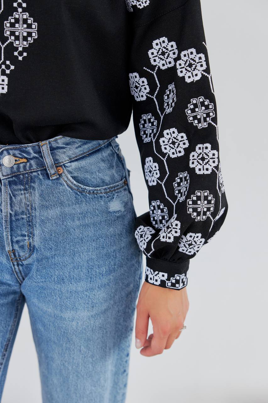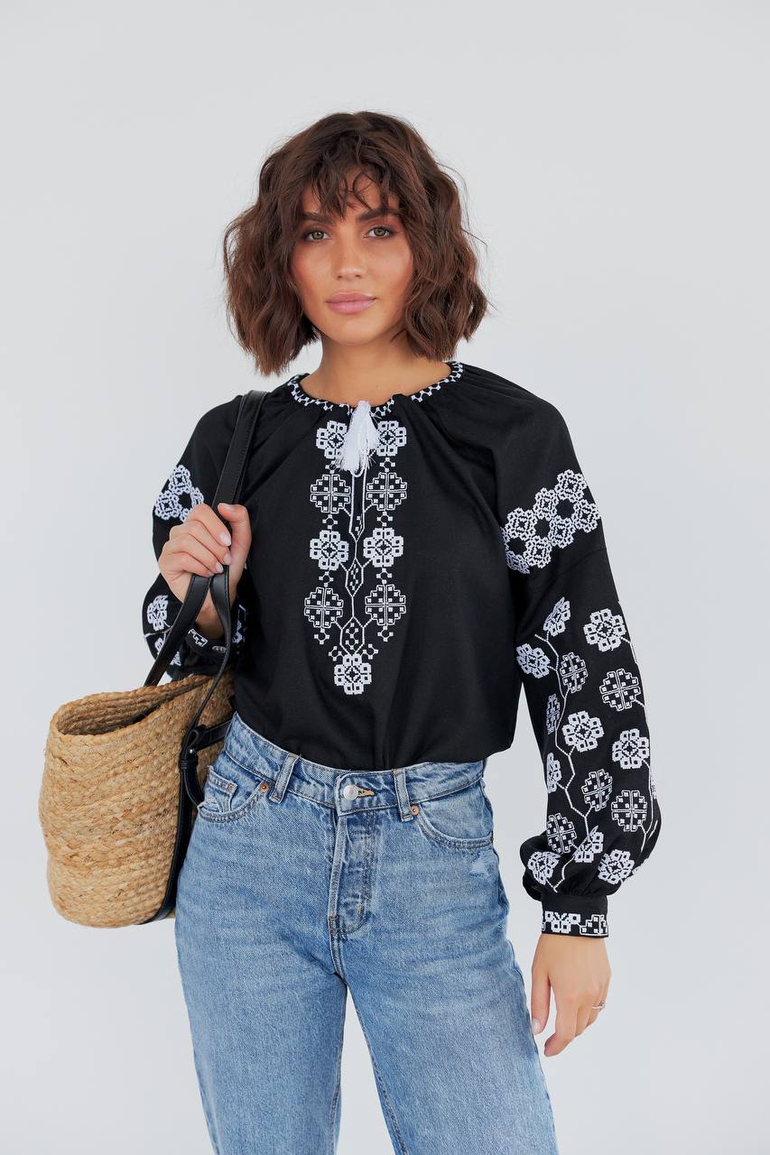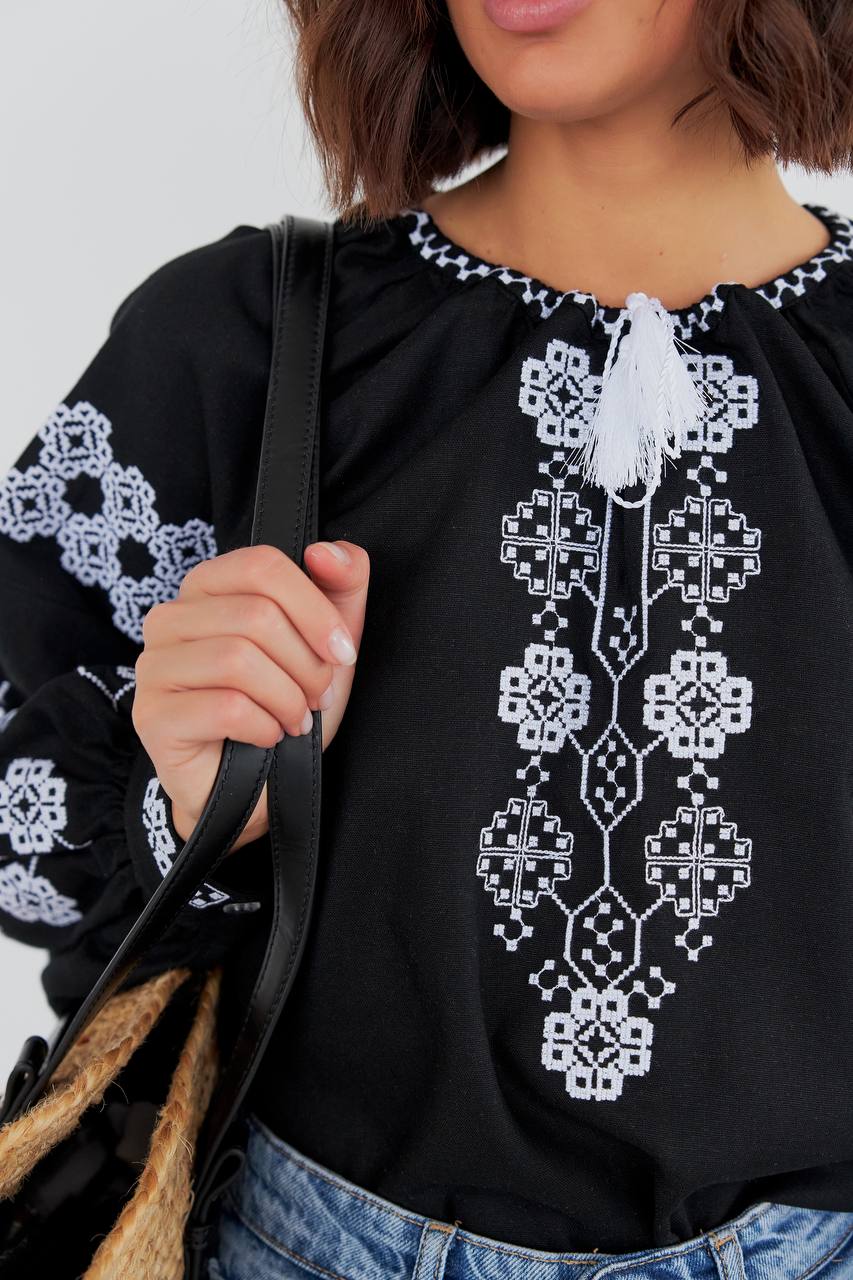 Жіноча вишиванка Бавовна (чорна ) виконана на льоні. Тип вишивки – хрестик.