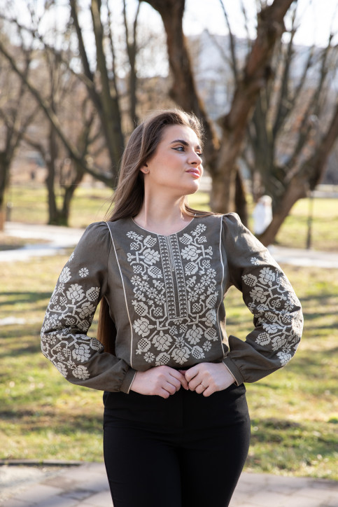 Жіноча вишиванка Влада (хакі) виконана на льоні