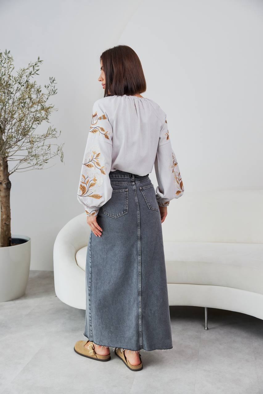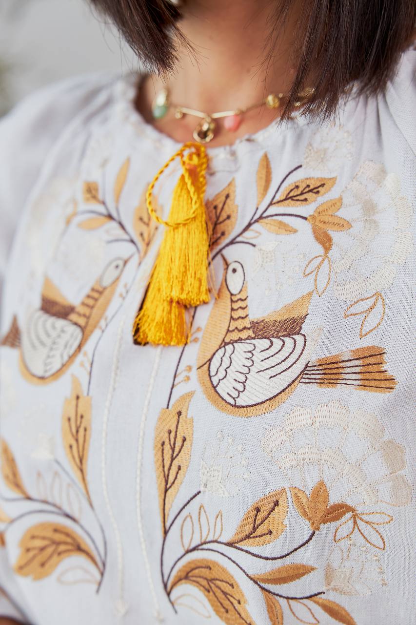 Жіноча вишиванка Дивоцвіт (біла) виконана на натуральній тканині.