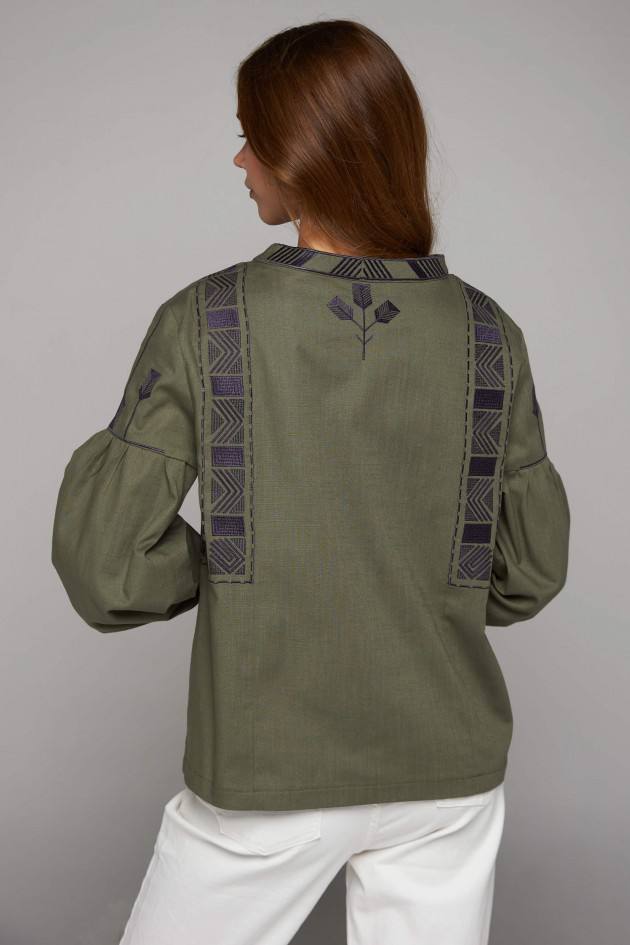 Жіноча вишиванка Класика (хакі) виконана на льоні