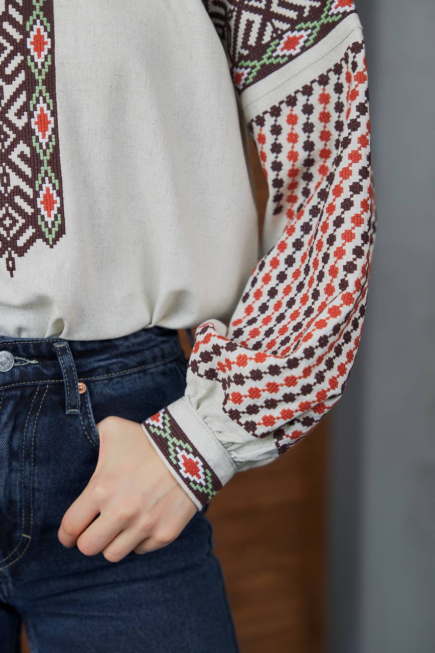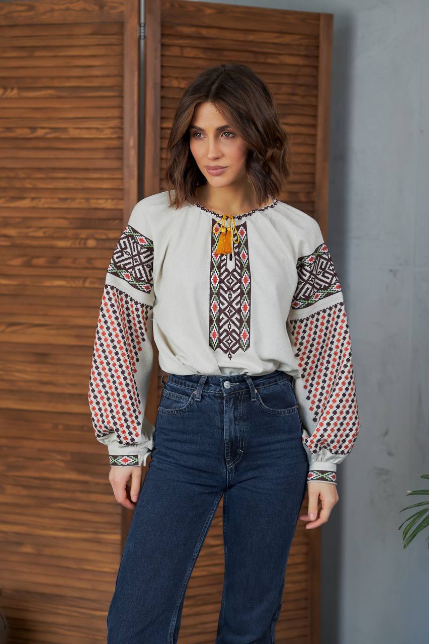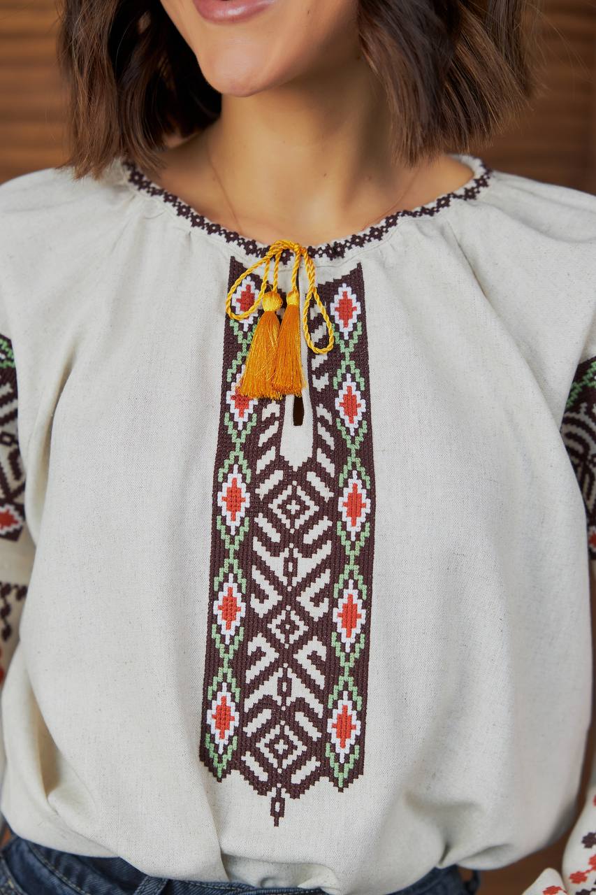 Жіноча вишиванка Колоритна (беж) виконана на льоні.