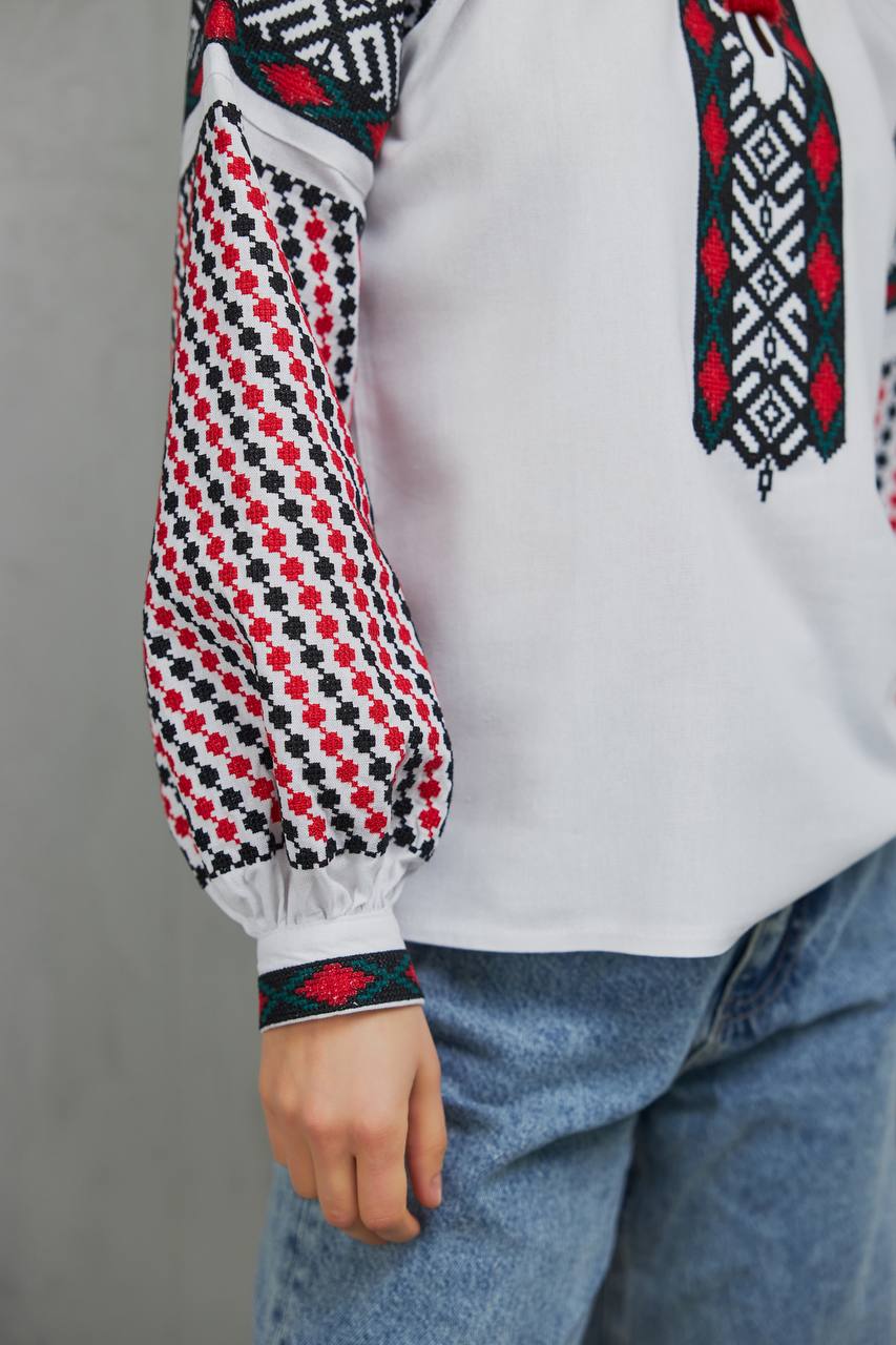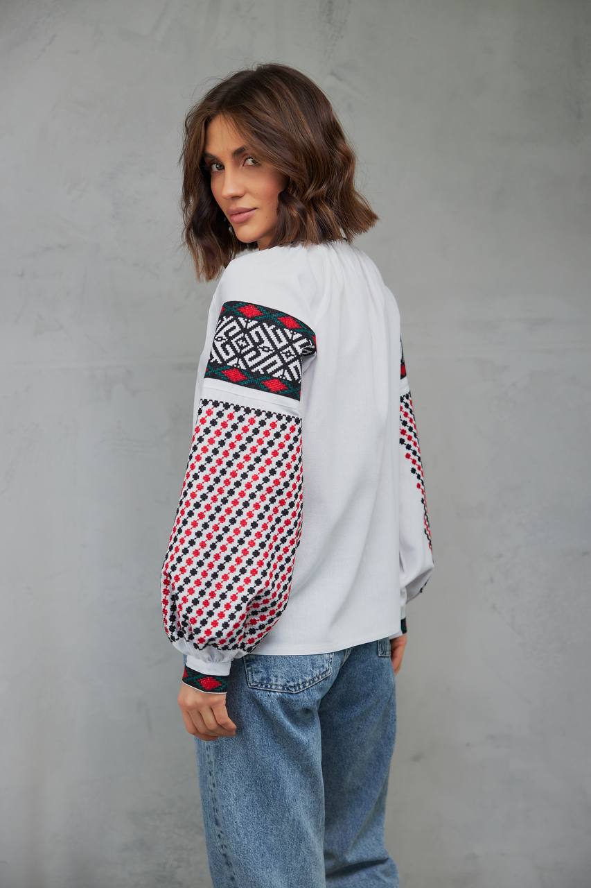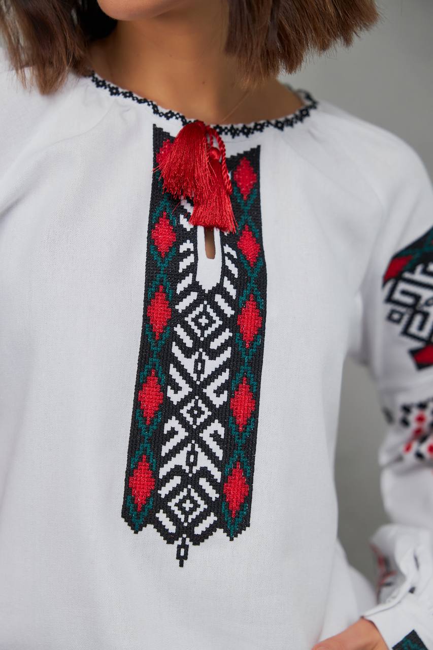 Жіноча вишиванка Колоритна (біла) виконана на льоні.