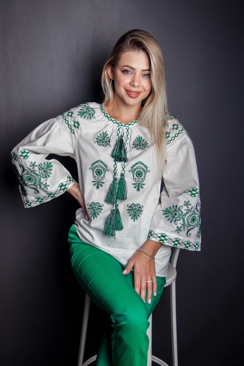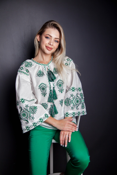 Жіноча вишиванка Полісся ( біло-зелена) виконана на натуральній тканині.