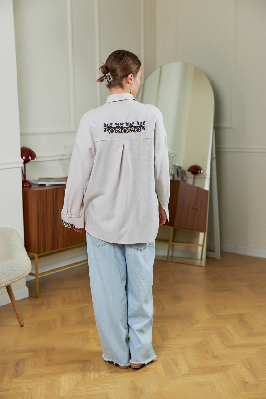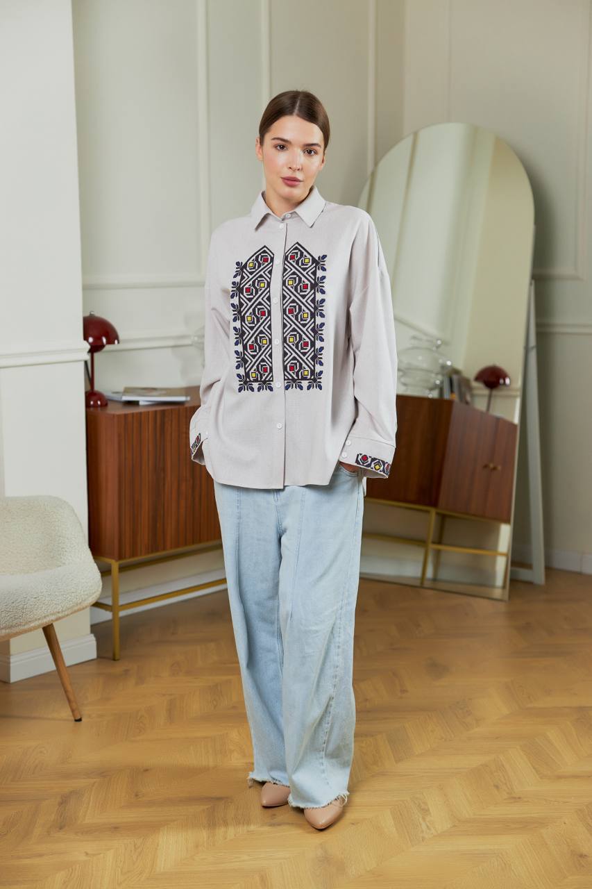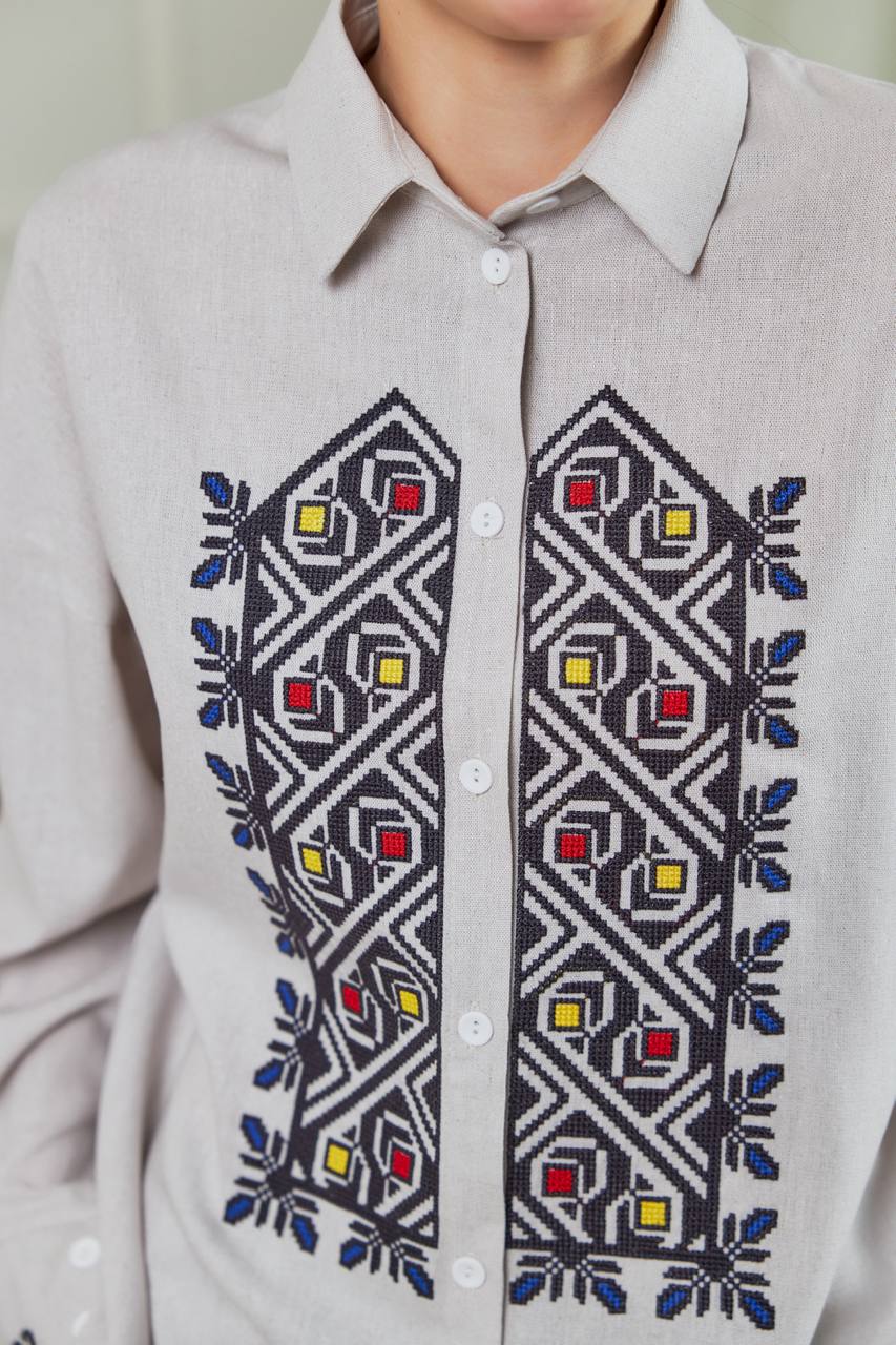 Жіноча вишиванка Серпанок (сіра) виконана на льоні.