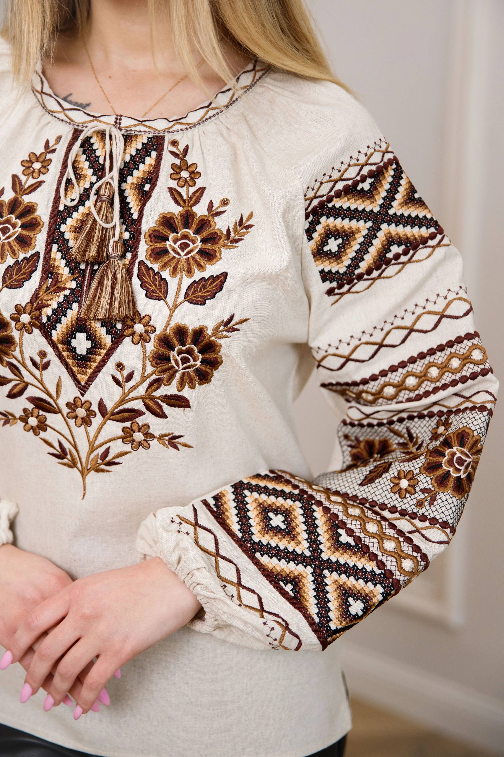 / Жіноча вишиванка Ярослава (беж з коричневим)