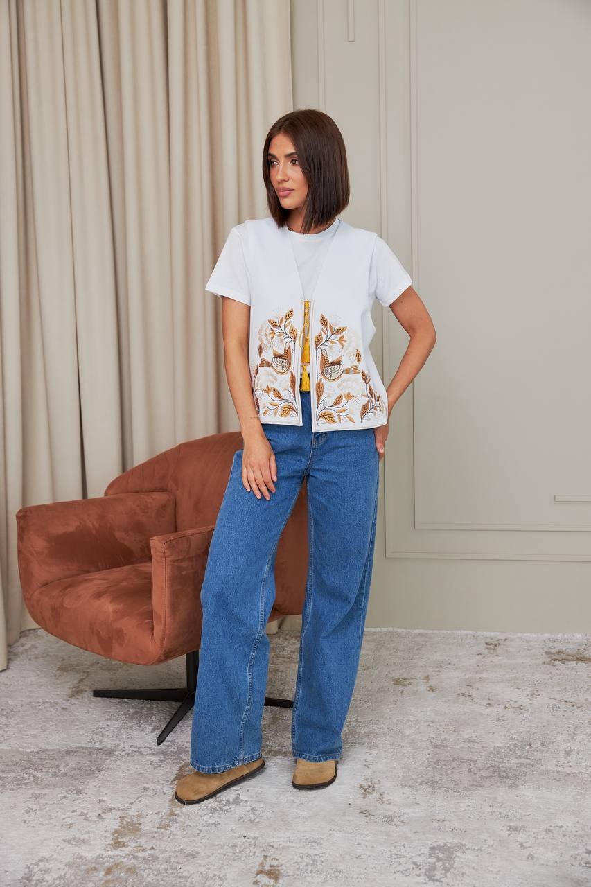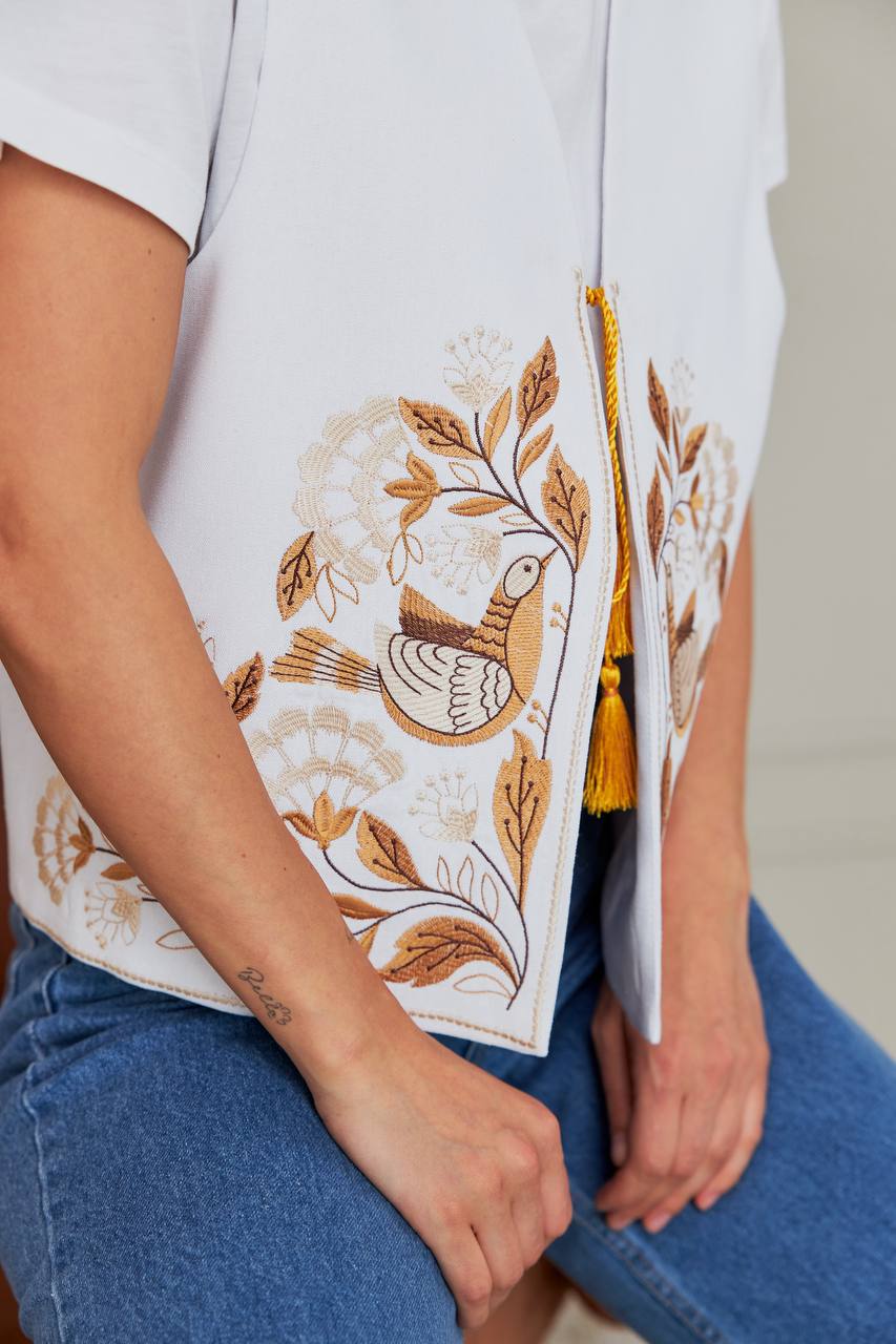 Жіноча вишита жилетка Дивоцвіт (біла)