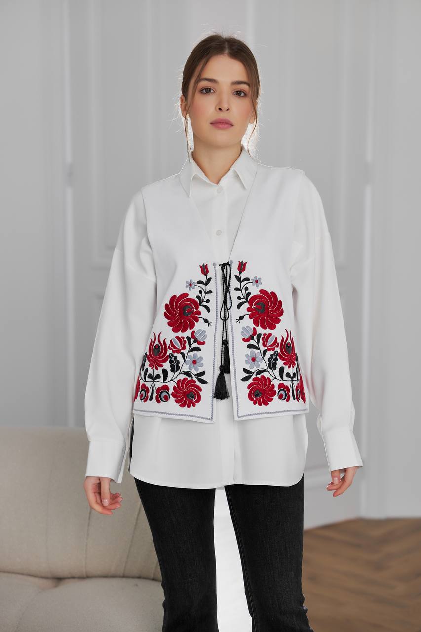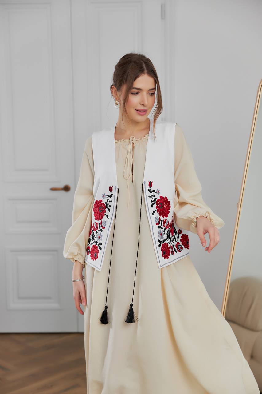 Жіноча вишита жилетка Петриківка (біла) виконана на льоні.