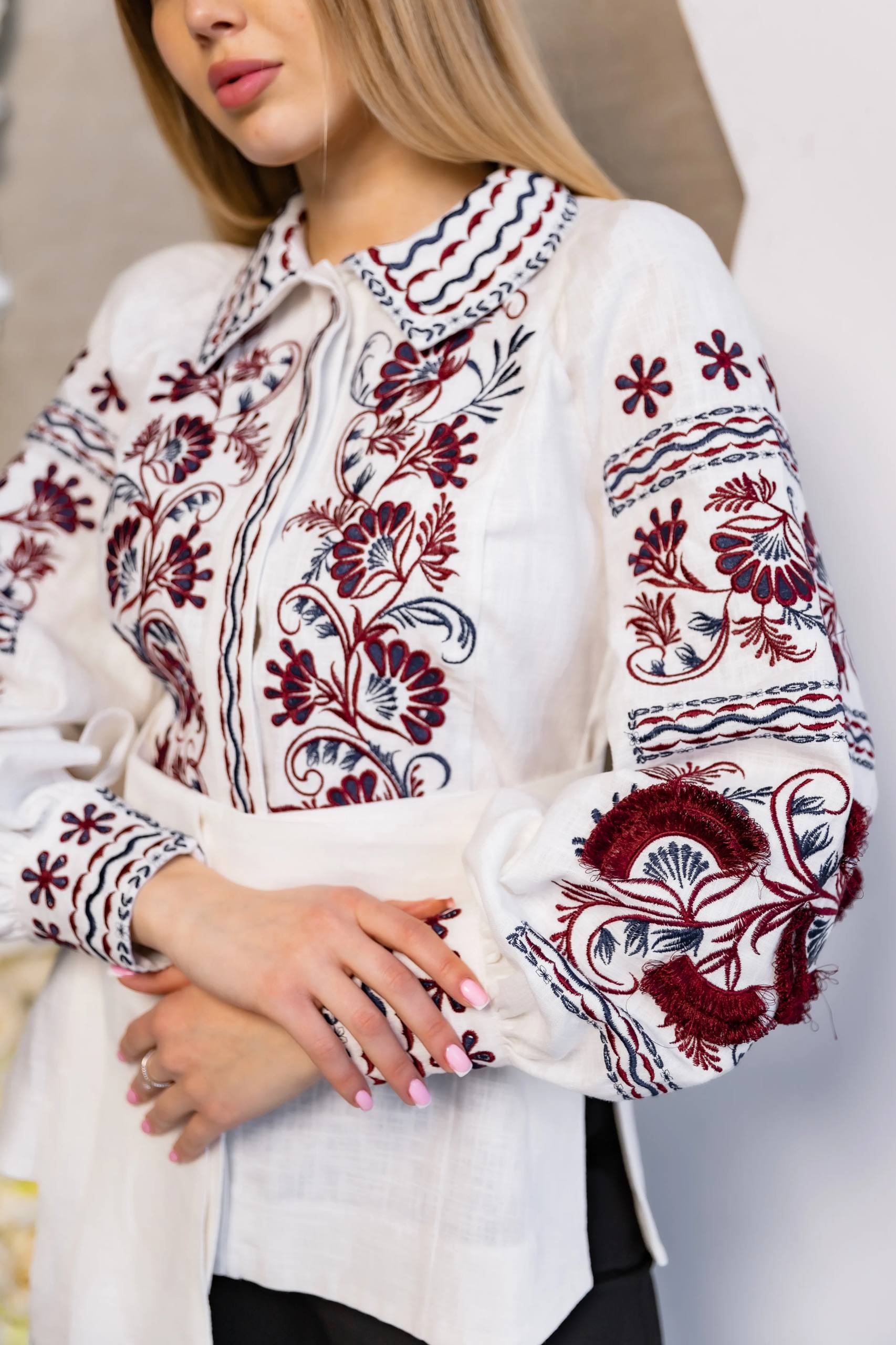 Жіноча вишита сорочка Чорна перлина (біла) виконана на натуральній тканині.