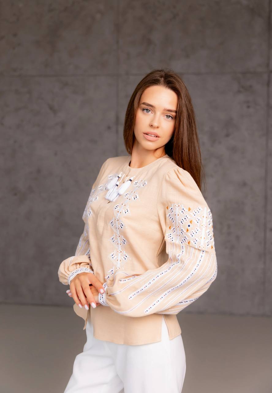 Жіноча вишита сорочка Залісся (бежева)  виконана на натуральній тканині.