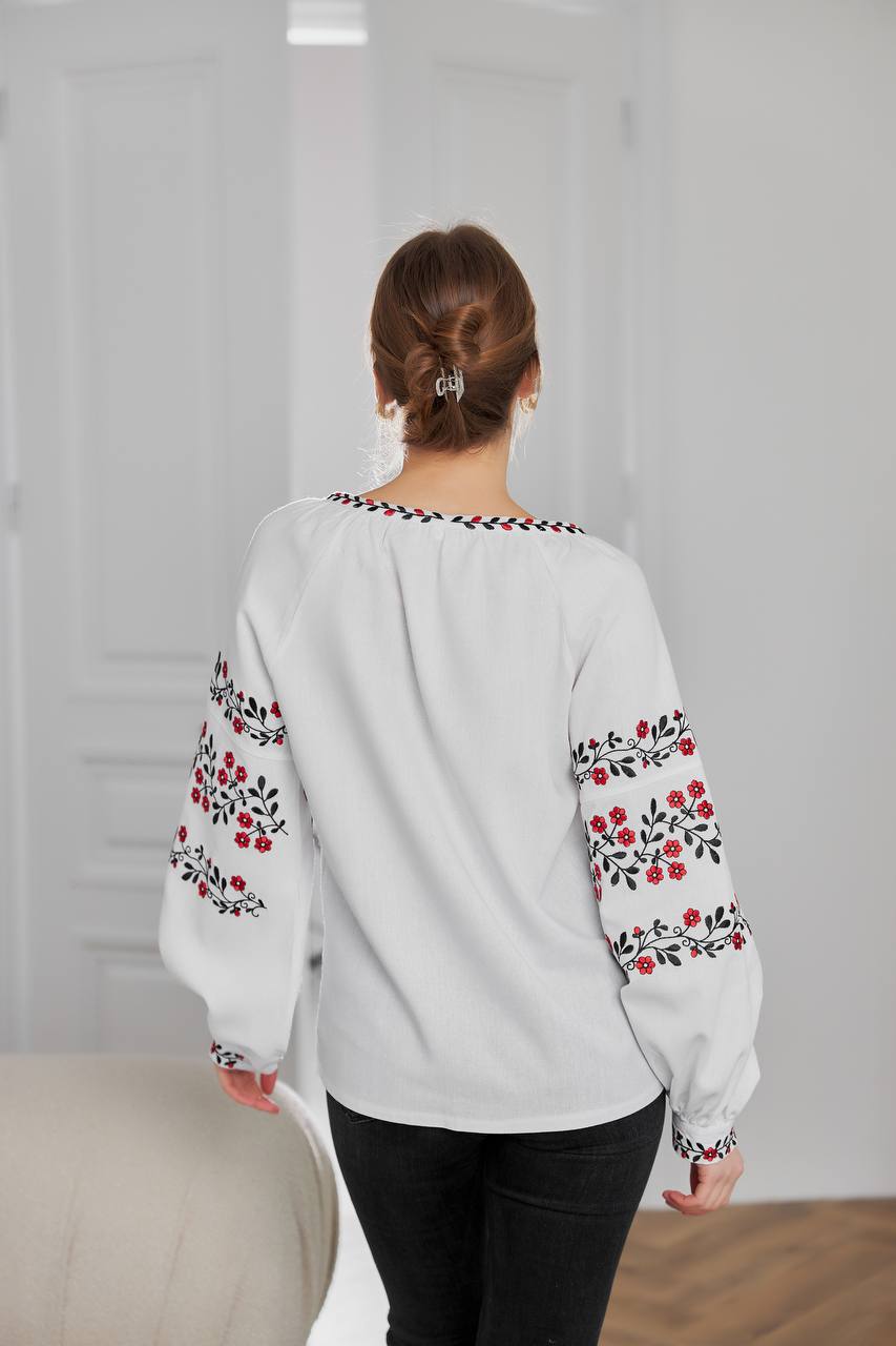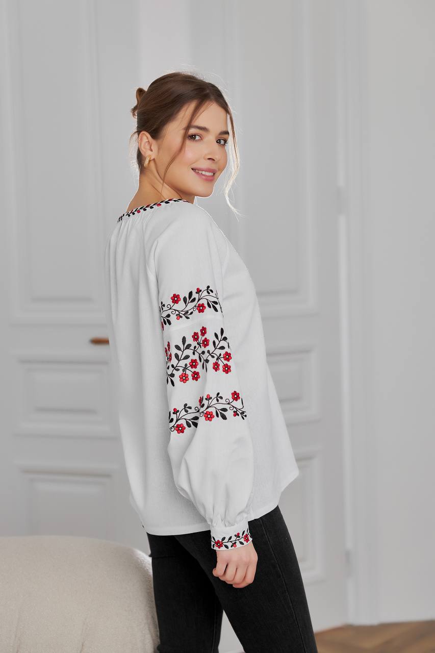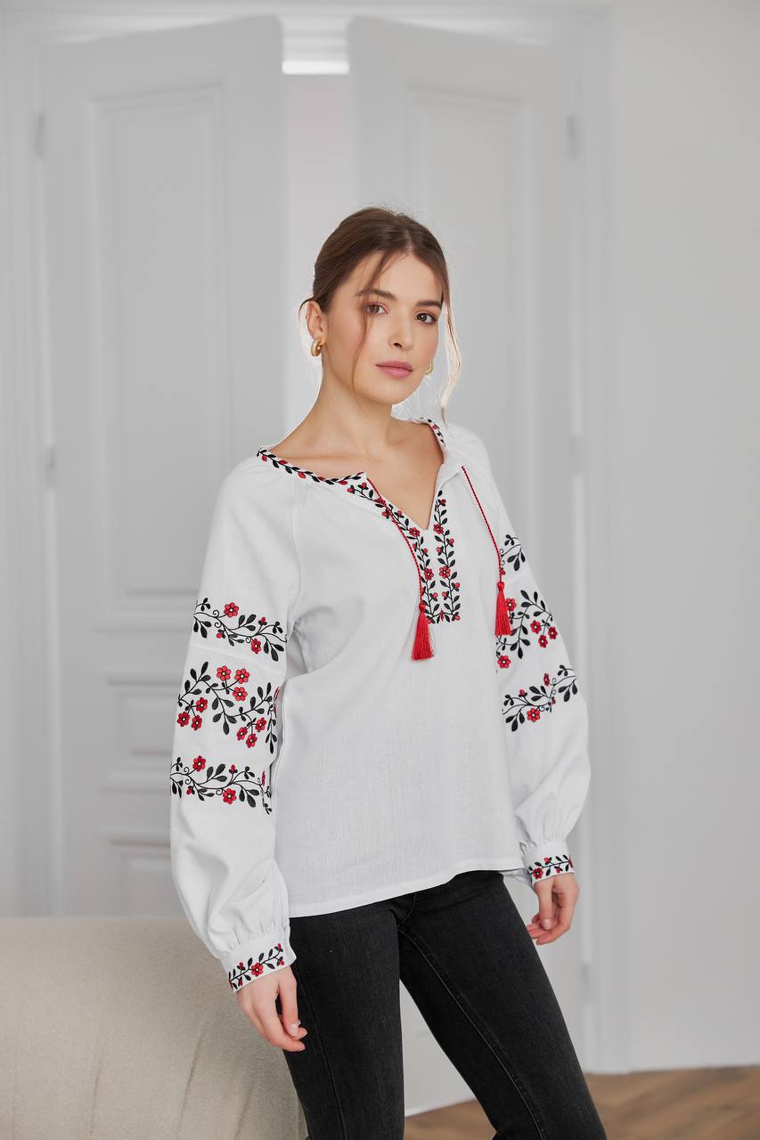 Жіноча вишита сорочка Подолянка (біло-червона) виконана на льоні.