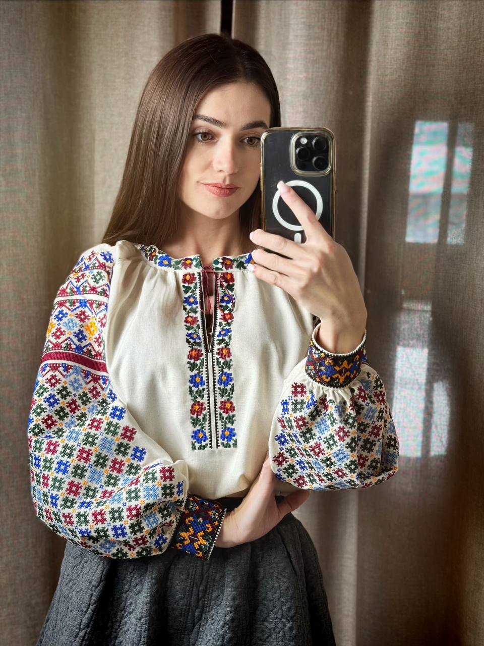 Жіноча вишита футболка Петра Плюс (синьо-рожева)