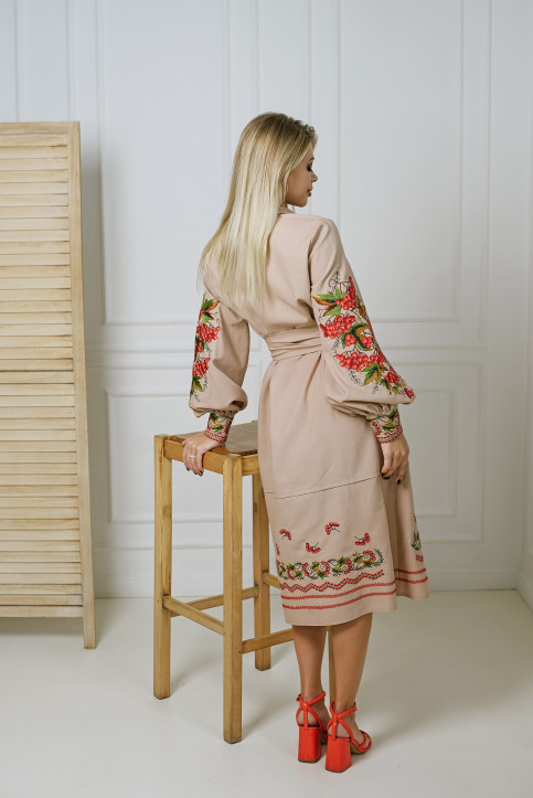 Жіноча вишита сукня Калина (бежева) виконана на льоні.