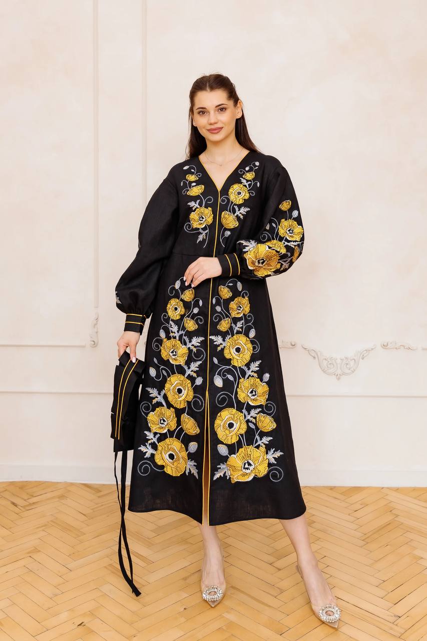 / Жіноча вишита сукня Харизма (чорна з золотом)