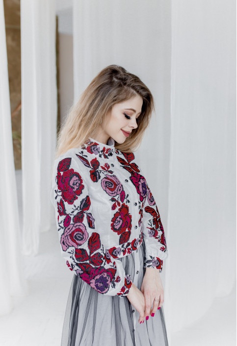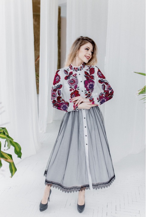Жіноча сукня Жанета (рожево-червона) виконана на льоні, з фатиновою спідницею. Тип вишивки льон