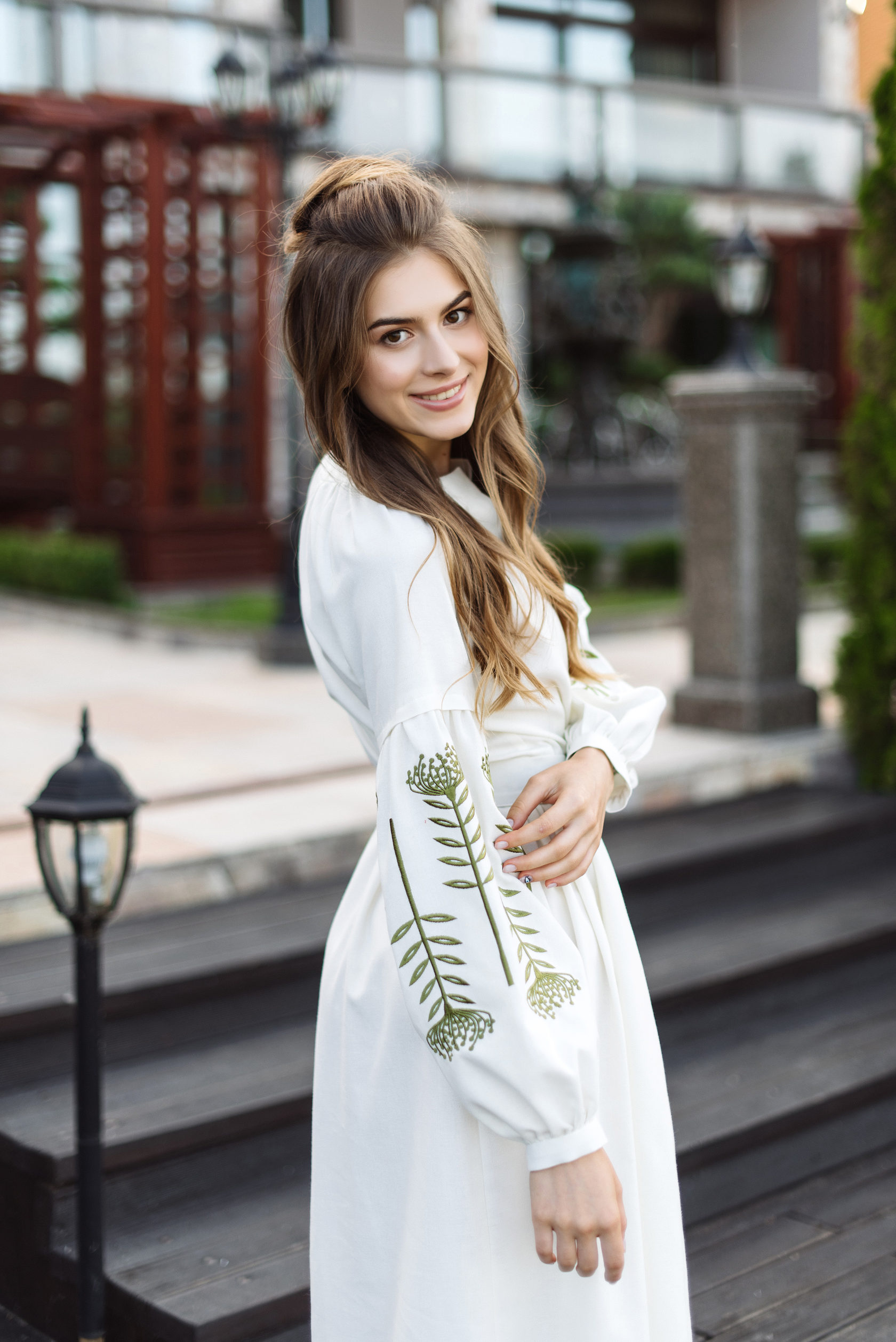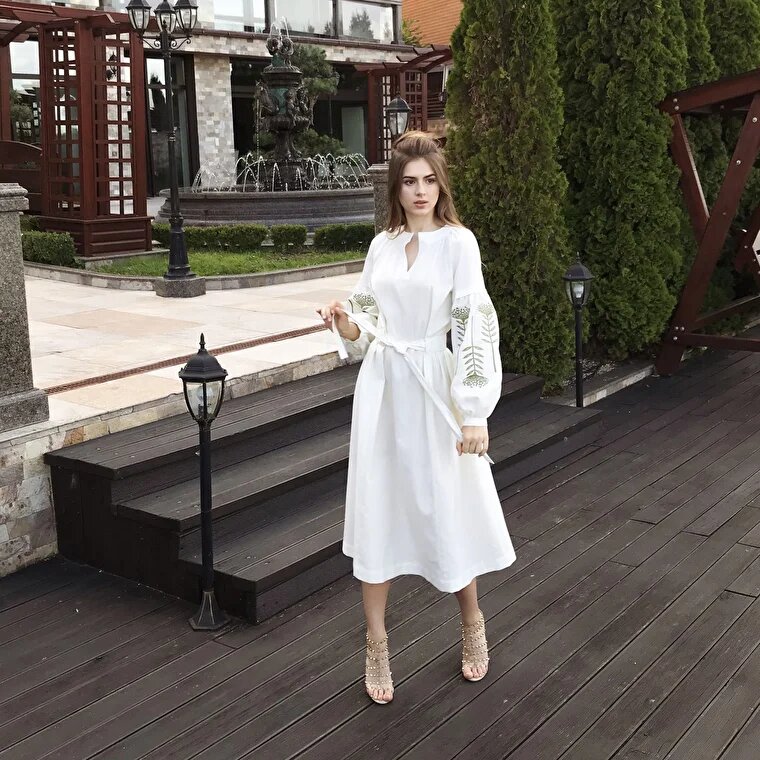 Жіноча сукня Магдалена (біла) виконана на бавовняній тканині, тип вишивки гладдю. Дану модель шиємо на замовлення протягом 10 днів