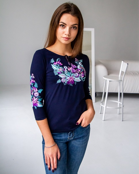 Жіноча вишита футболка Петра Плюс (синьо-рожева)