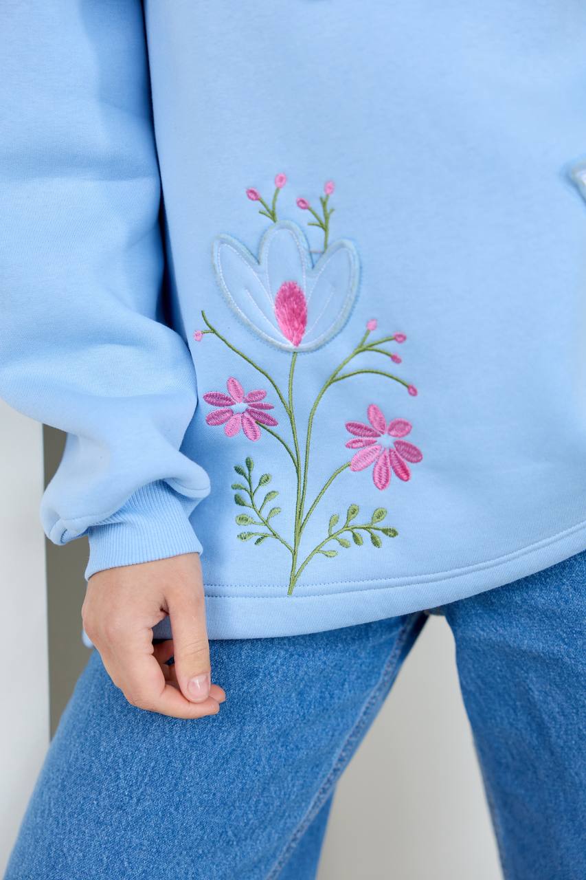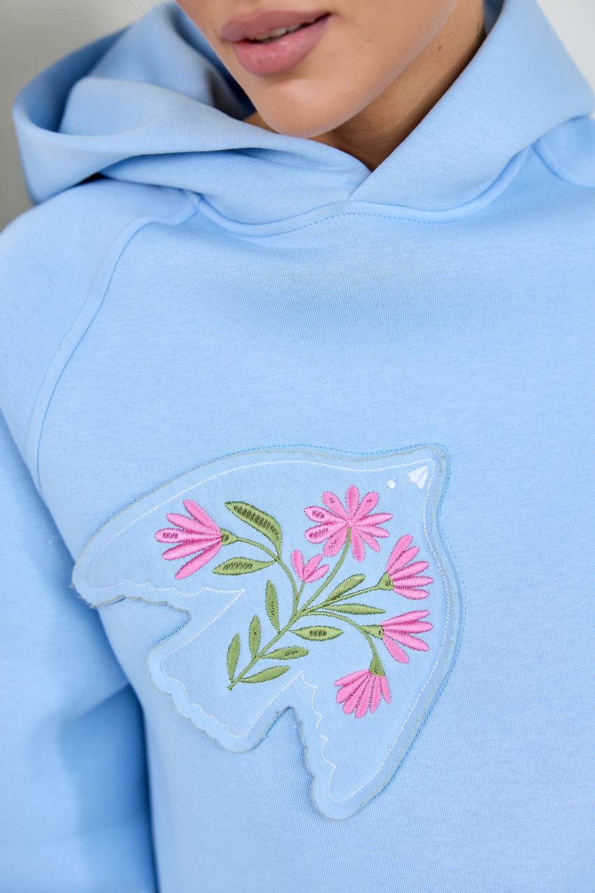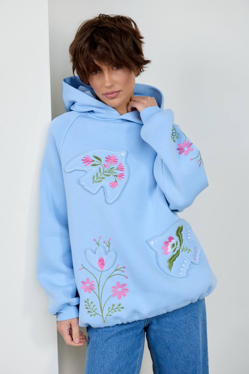 / Жіноче вишите худі Пташка (блакитне)