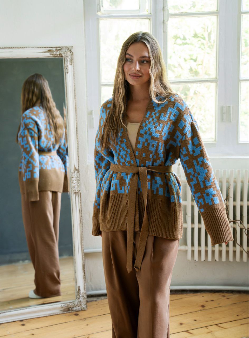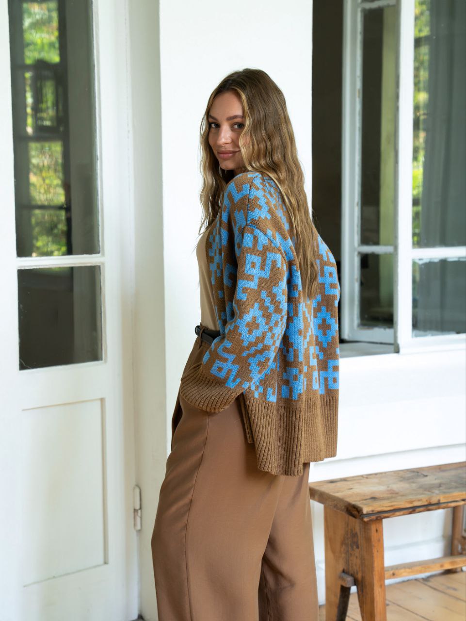 Кардиган “Вояж” (коричнево-блакитний) має універсальний розмір 44/50.