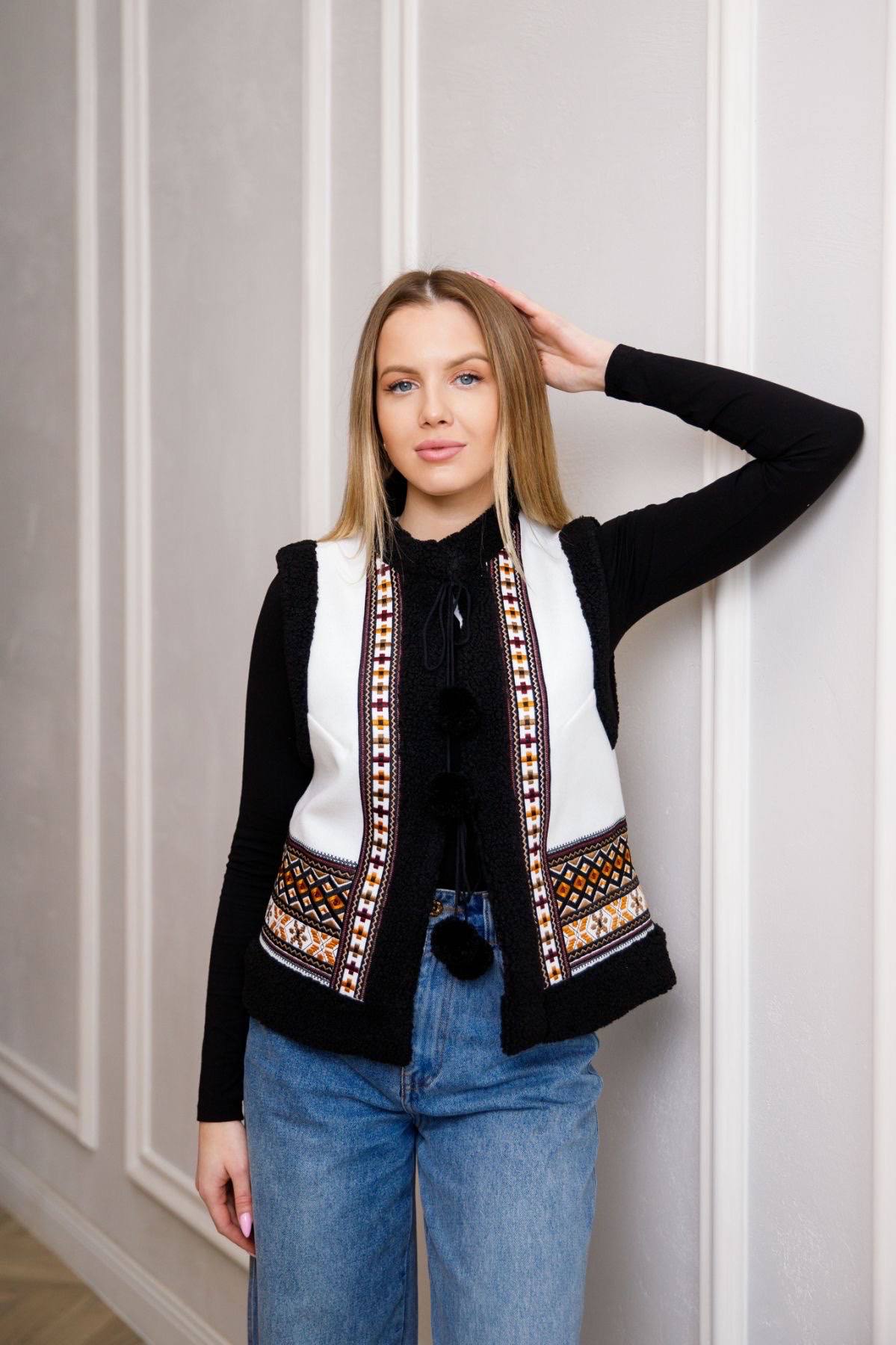 / Карпатська кептарка з геометричним орнаментом (біла)