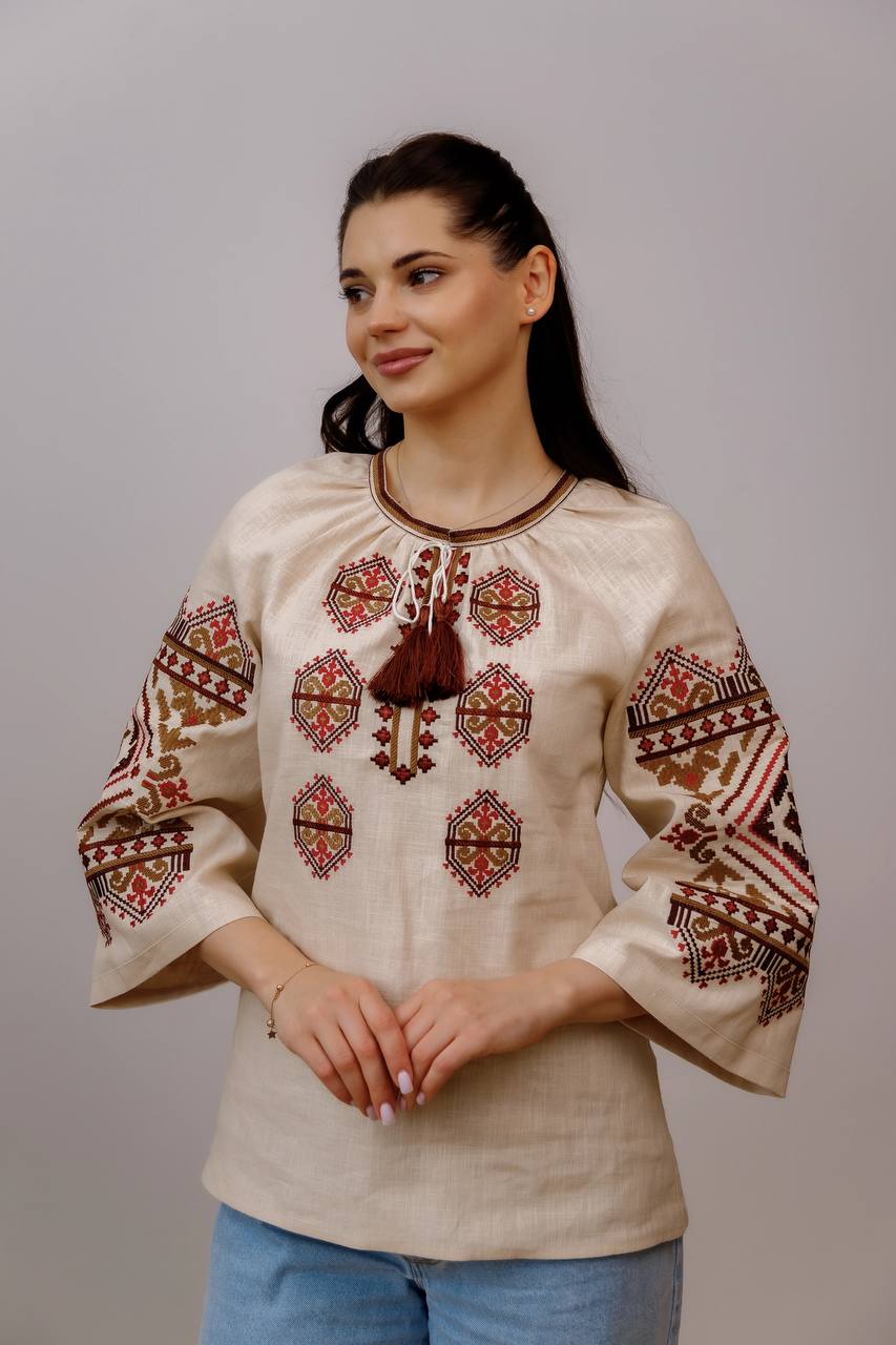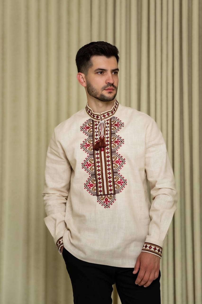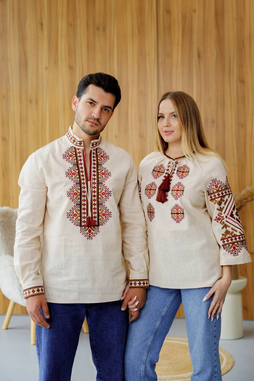 Парний комплект Богуслави  (беж з вишневим)виконаний на натуральній тканині.