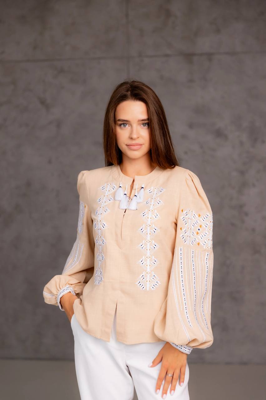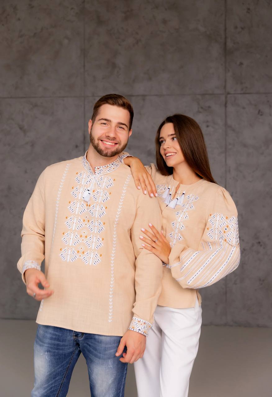 Парний комплект Залісся (бежевий) виконаний на натуральній тканині.