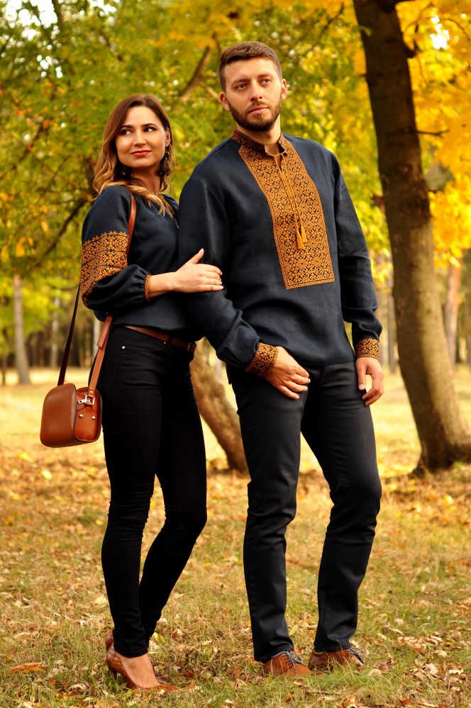 Парний комплект Липа (темно-синій) виконаний на 100 % льоні.