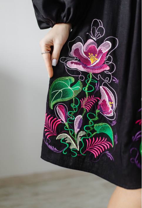 Жіноча сукня Світанок (чорна) виконана на льоні, тип вишивки гладдю. Легка в догляді, приємна до тіла
