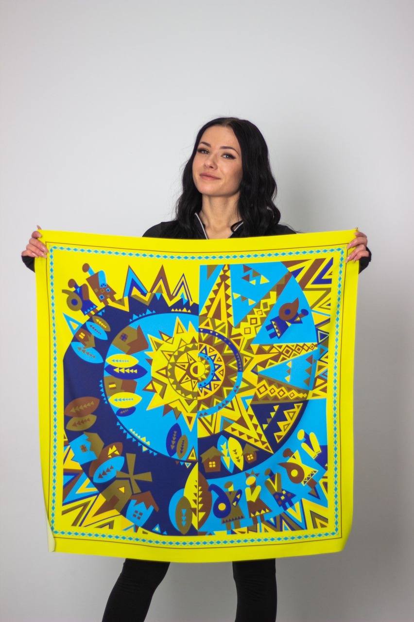Хустка Зірка виконана з штучного шовку марки Армані. Розмір 77/77 см. Вона доповнить Ваш образ та може стати гарним подарунком