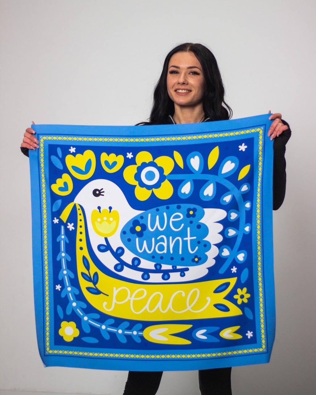 Хустка Мир виконана з штучного шовку марки Армані. Розмір 77/77 см. Вона доповнить Ваш образ та може стати гарним подарунком