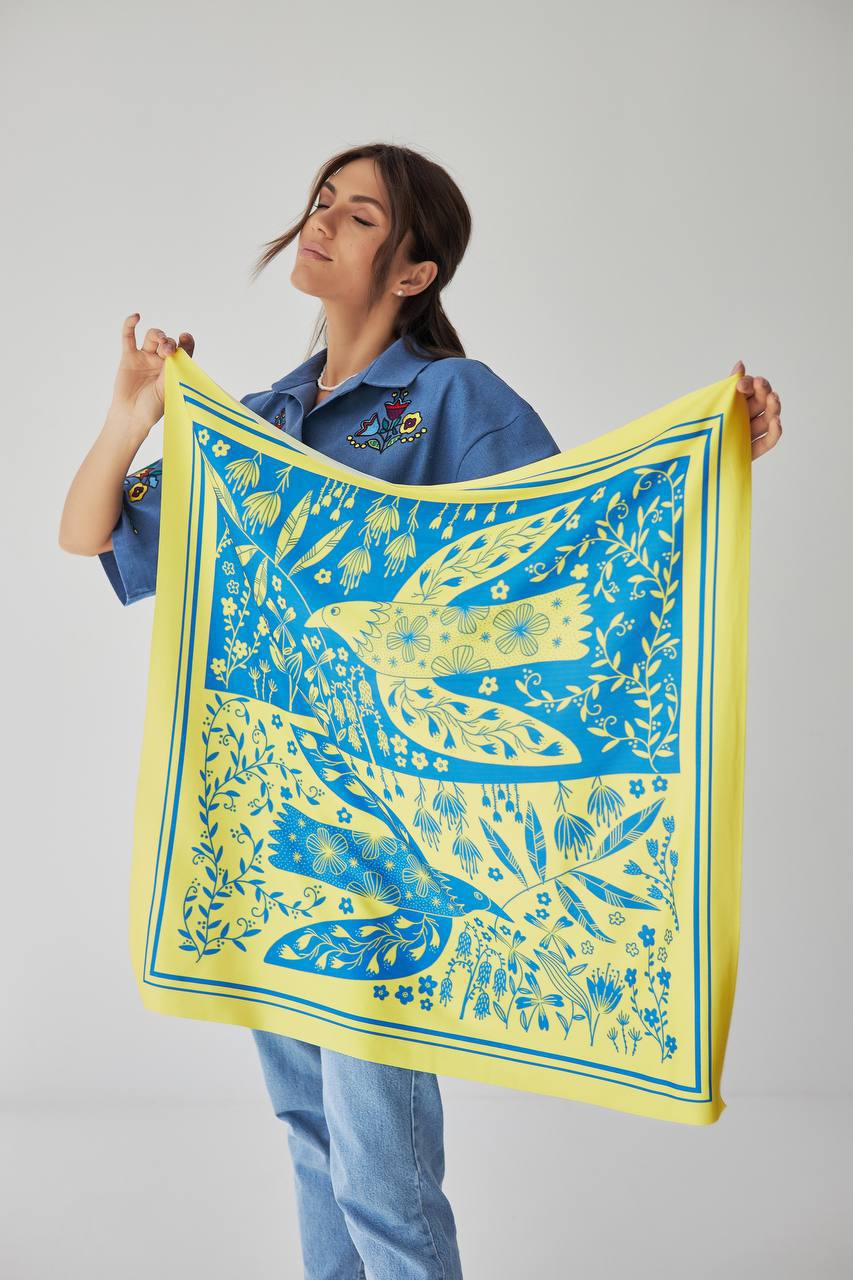 Хустка Птахи виконана з штучного шовку марки Армані. Розмір 77/77 см. Вона доповнить Ваш образ та може стати гарним подарунком