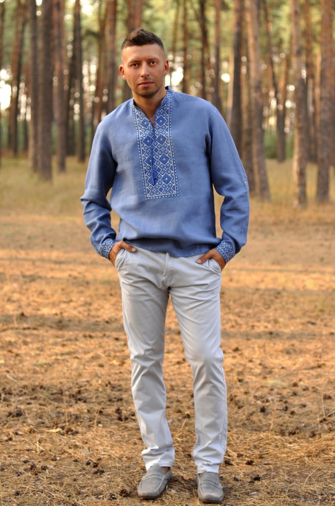 Чоловіча вишиванка Горицвіт (блакитна)