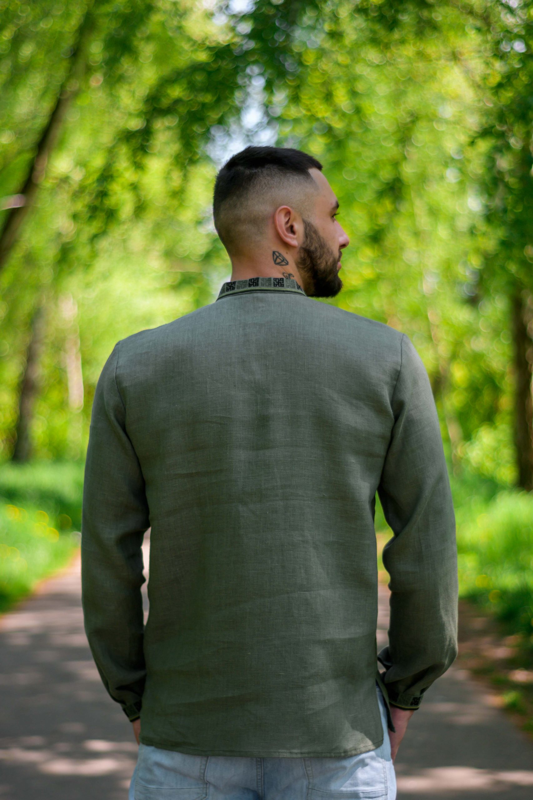 Чоловіча вишиванка Зірка (хакі) виконана на льоні.