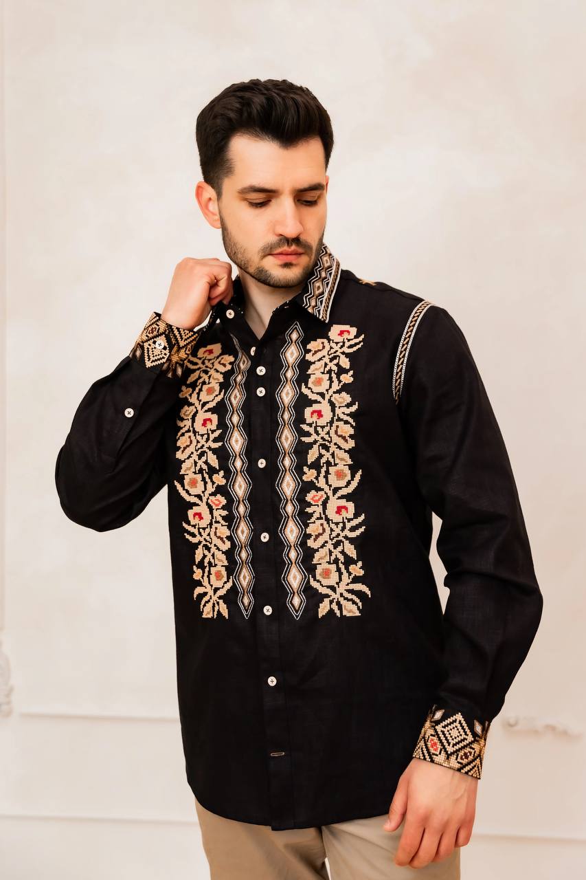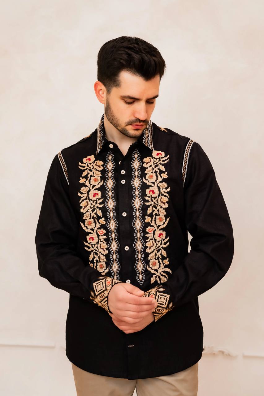 / Чоловіча вишиванка Мирослав (чорна з бежевим)