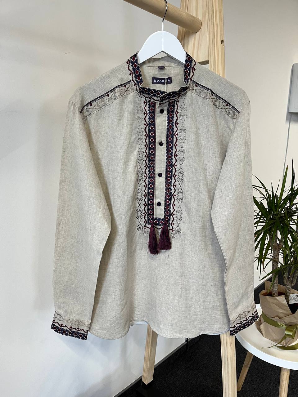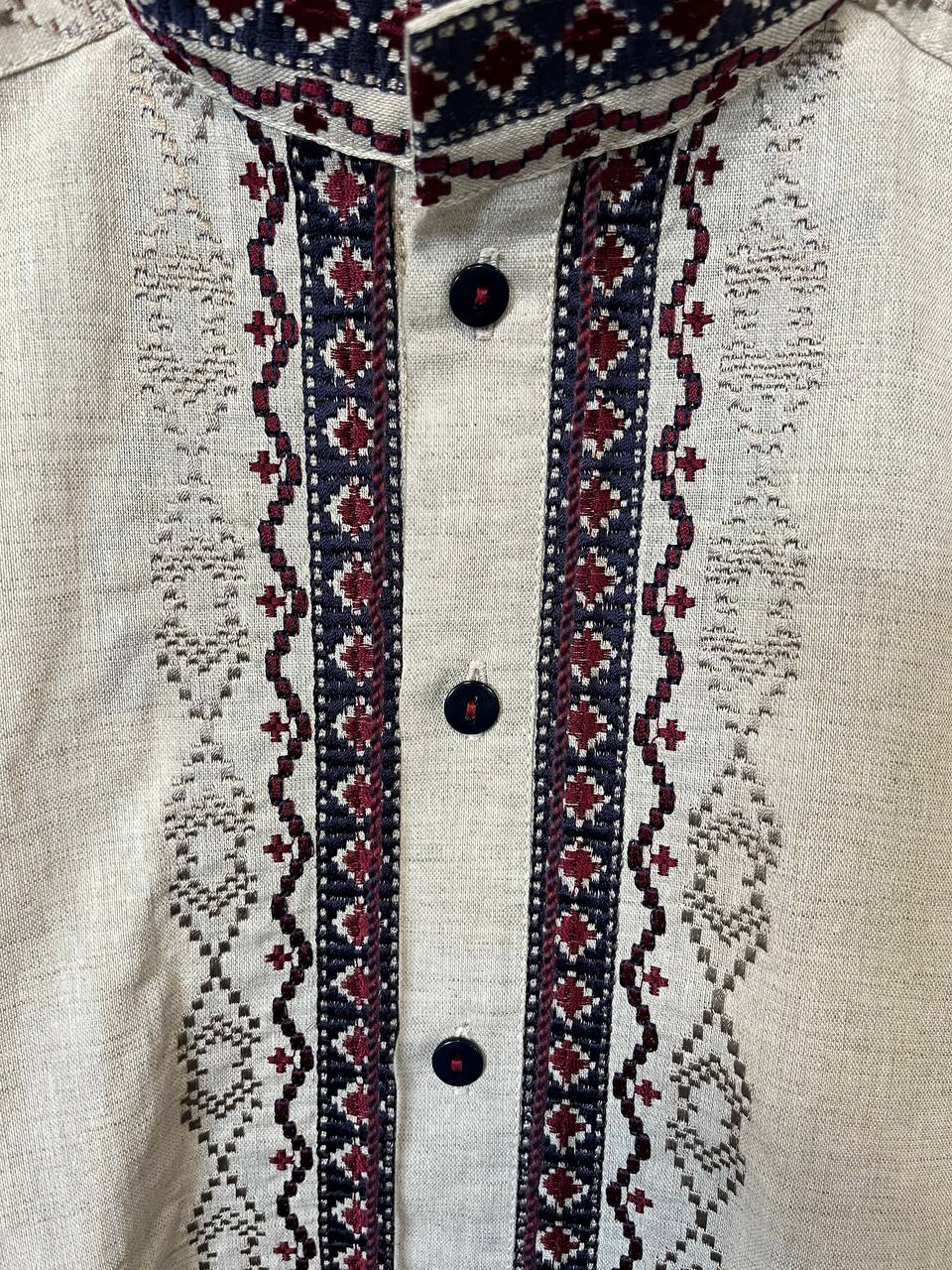 Чоловіча вишиванка Чернігівська (беж) виконана на льоні. Тип вишивки -гладдю