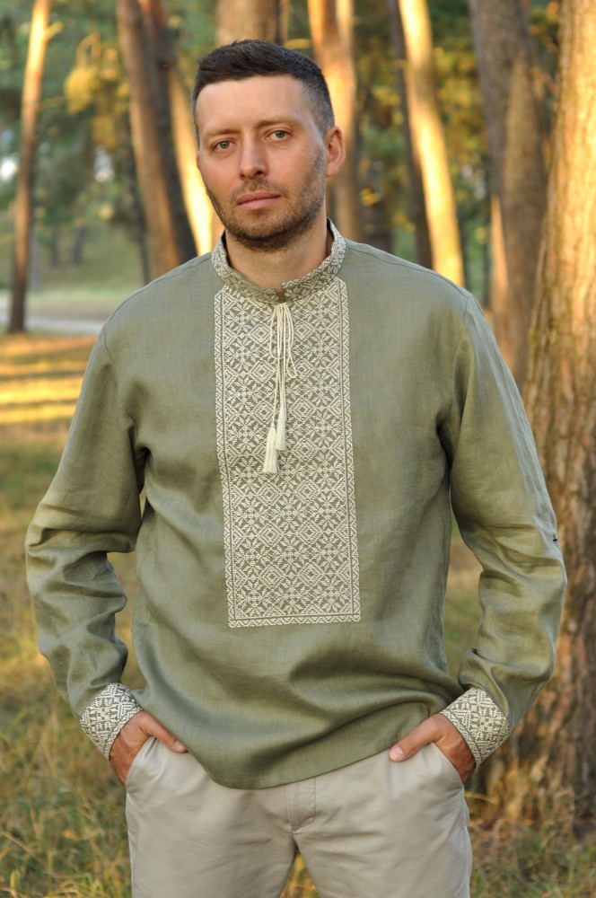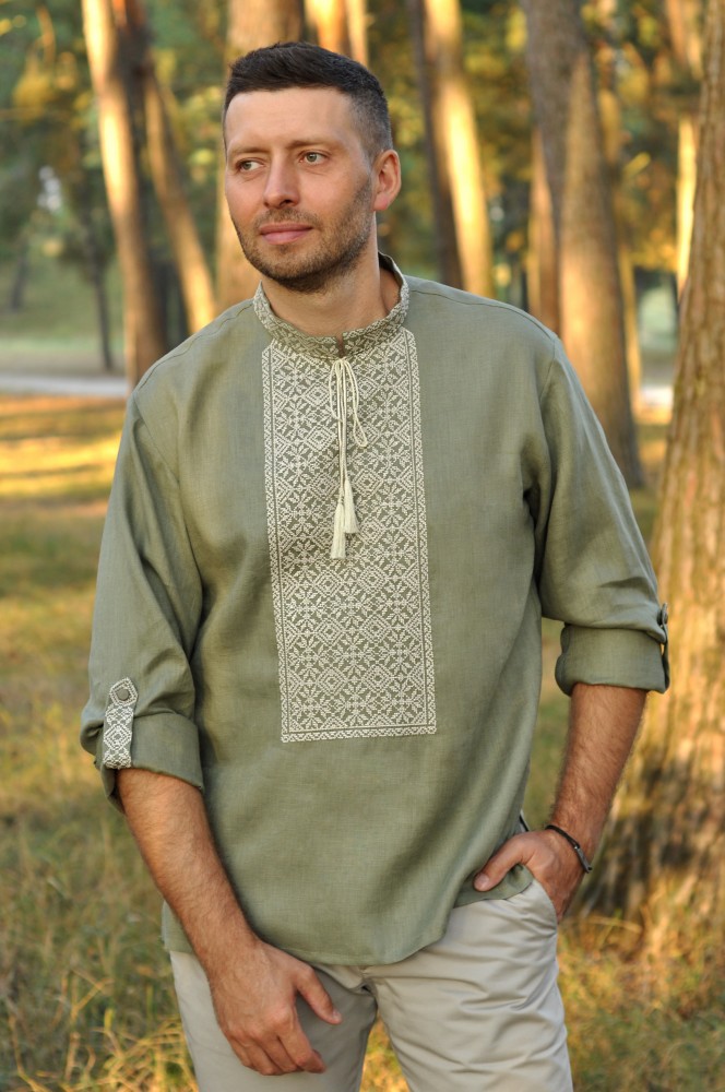 Чоловіча вишита сорочка Спадок (хакі) виконана на льоні. Тип вишивки – хрестик.