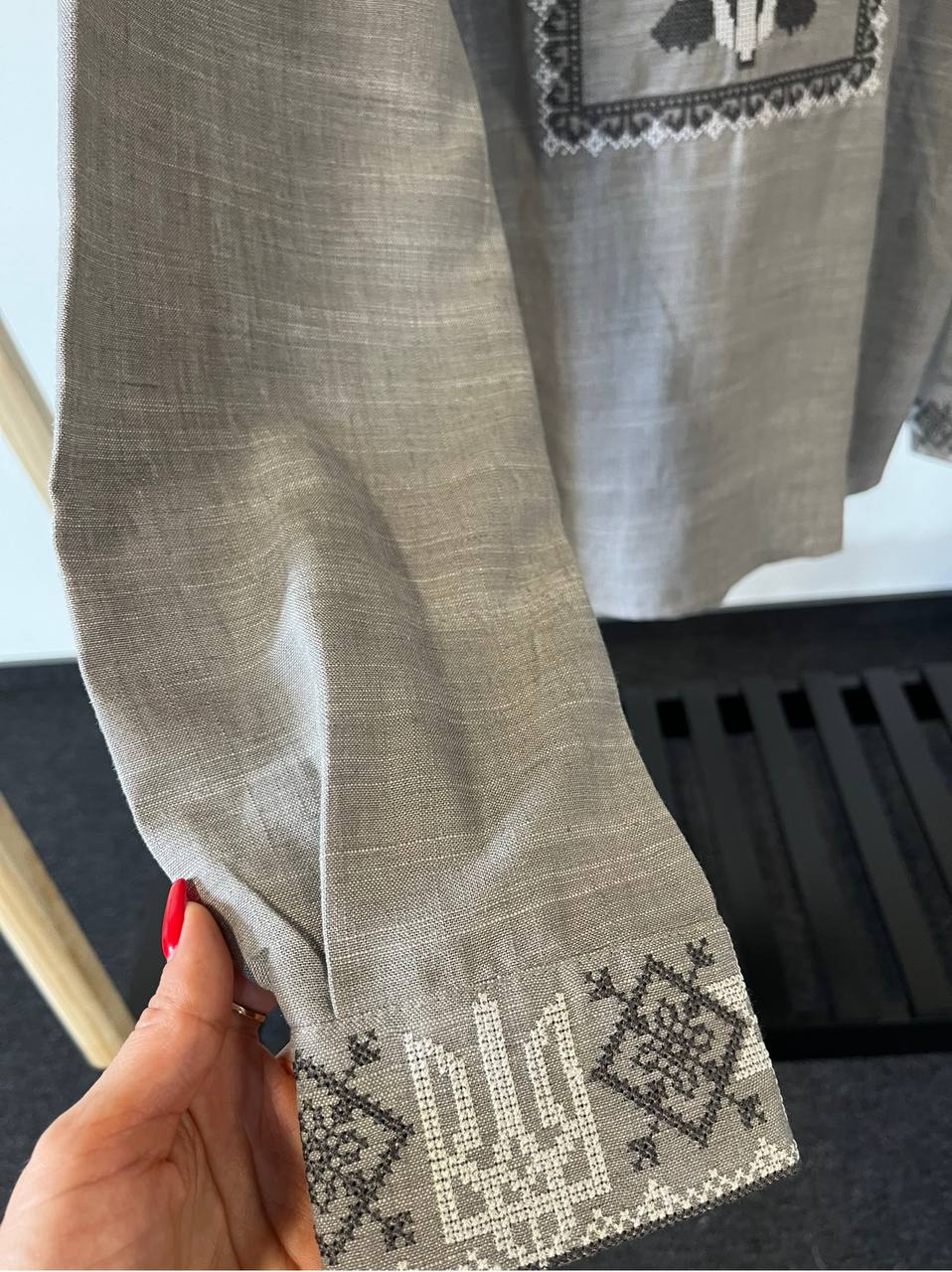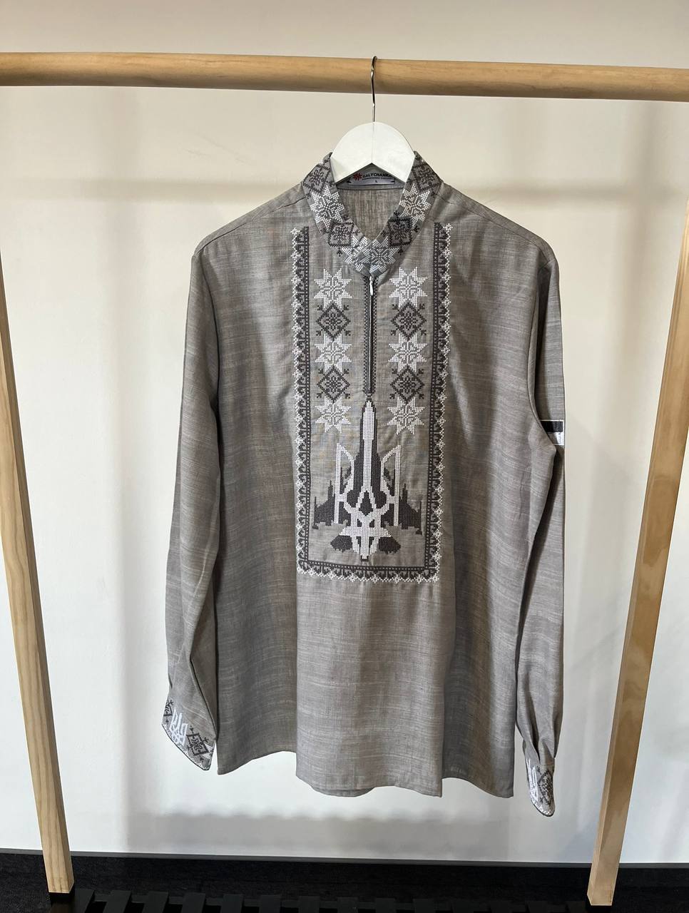 Чоловіча вишиванка Перемога (сіра) виконана на льоні.